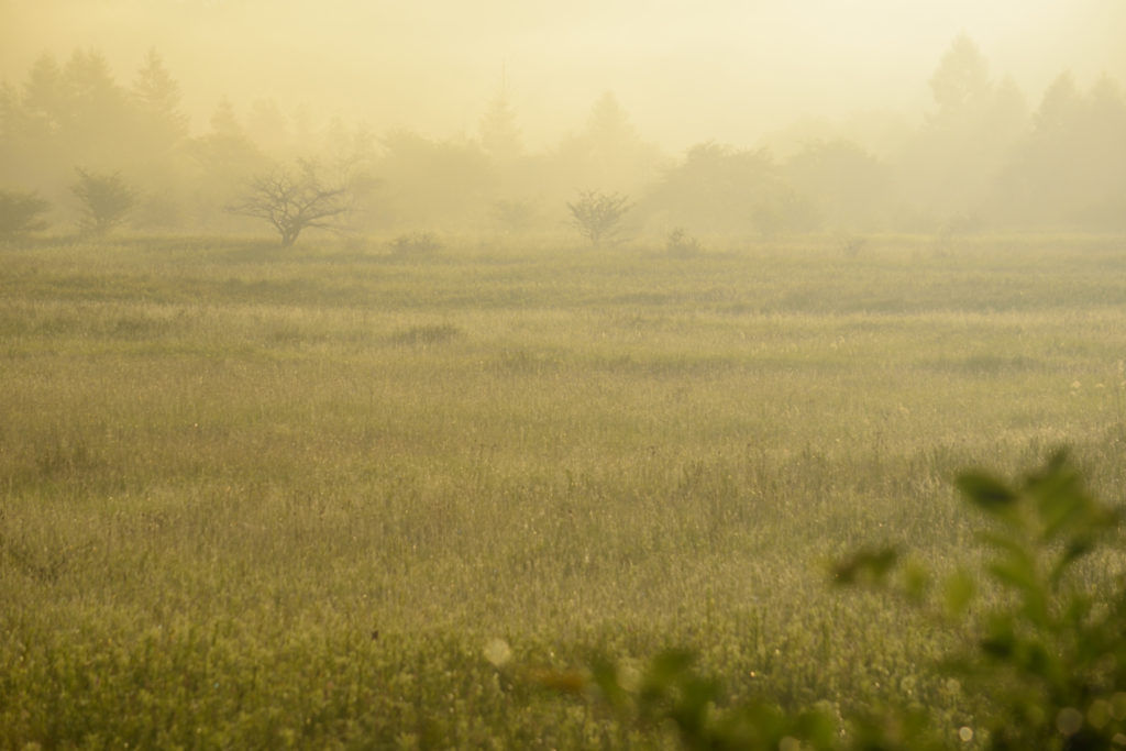 朝早く小田代原に行くと、朝もやに包まれた幻想的な景色を見る事ができます。