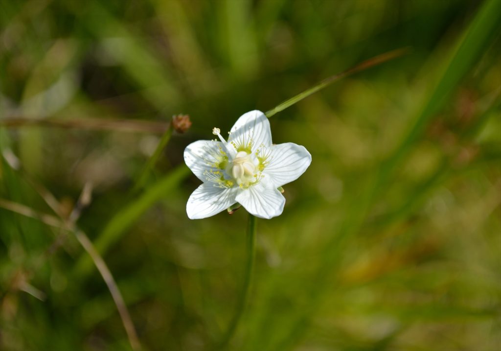 派手派手しさはありませんが、黄緑色の細い線と小さく輝く黄色の仮雄しべが良い味を出しているウメバチソウ。