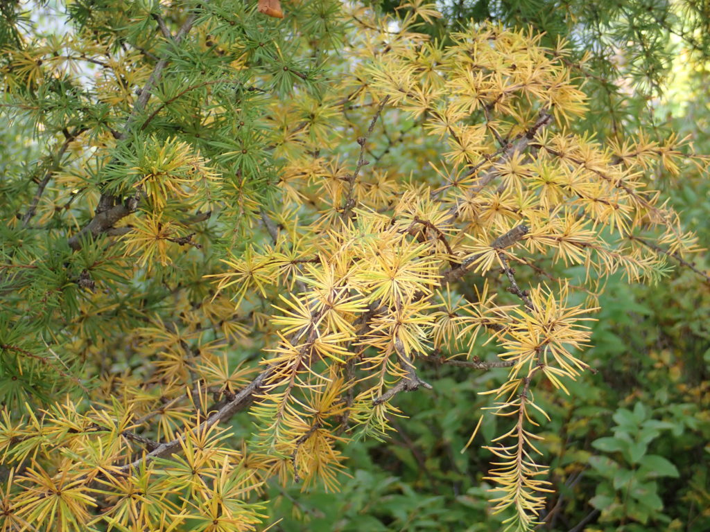 草だけじゃない、カラマツの葉も緑から黄色に変わりつつあります