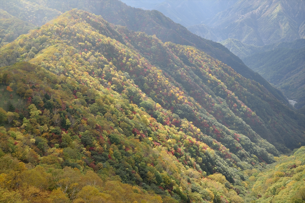 こちらは半月山展望台駐車場から見た足尾の山々の斜面