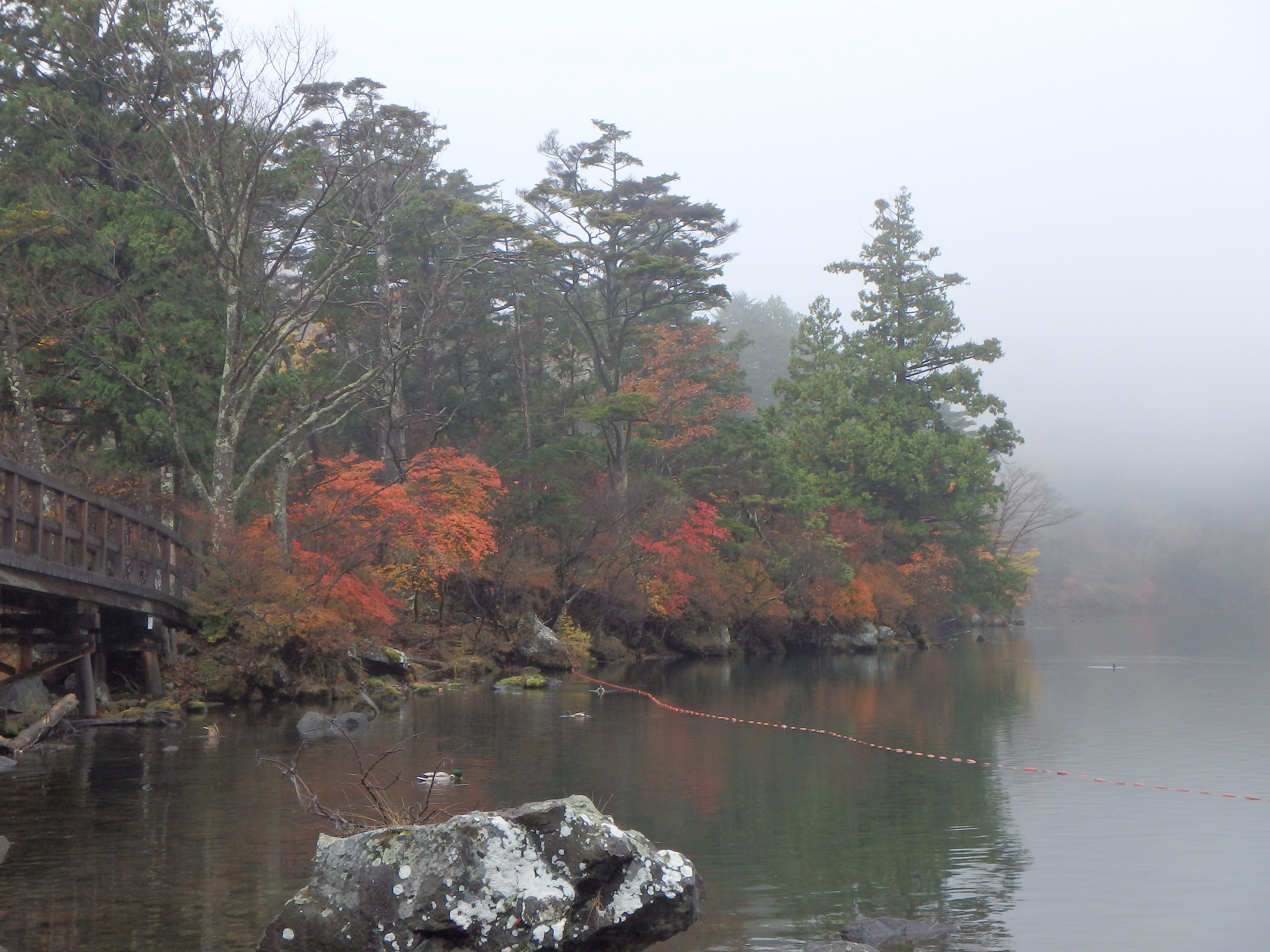 こちらは、色づきはじめです。中禅寺湖のきれいな水面と紅葉がステキです!