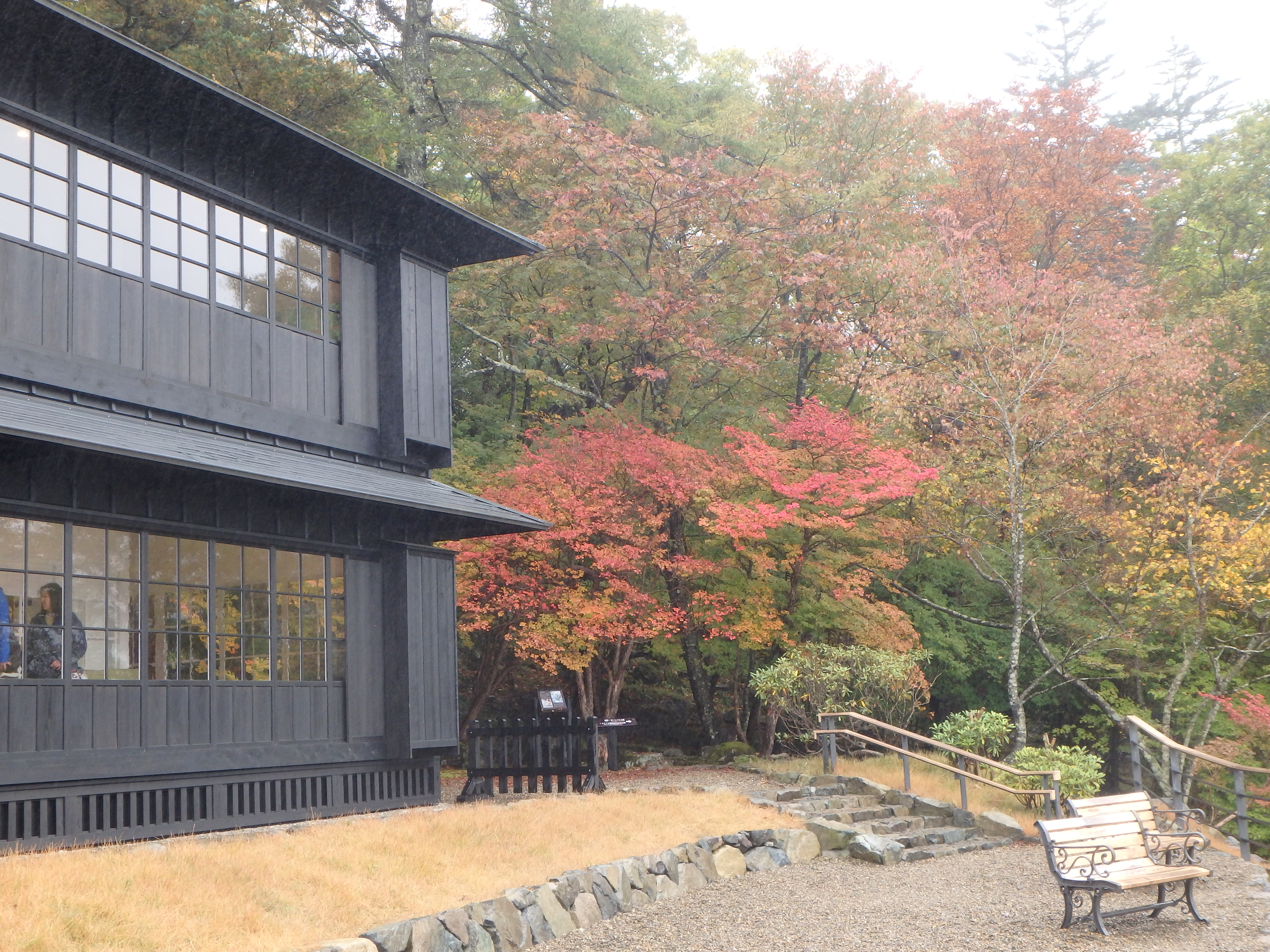 だいぶ葉が落ちてきましたが、カラマツの黄色い葉が残っている状況です。小雨でしたがお客様はたくさんいらしていました。