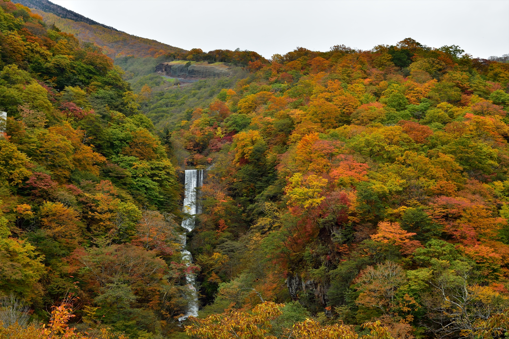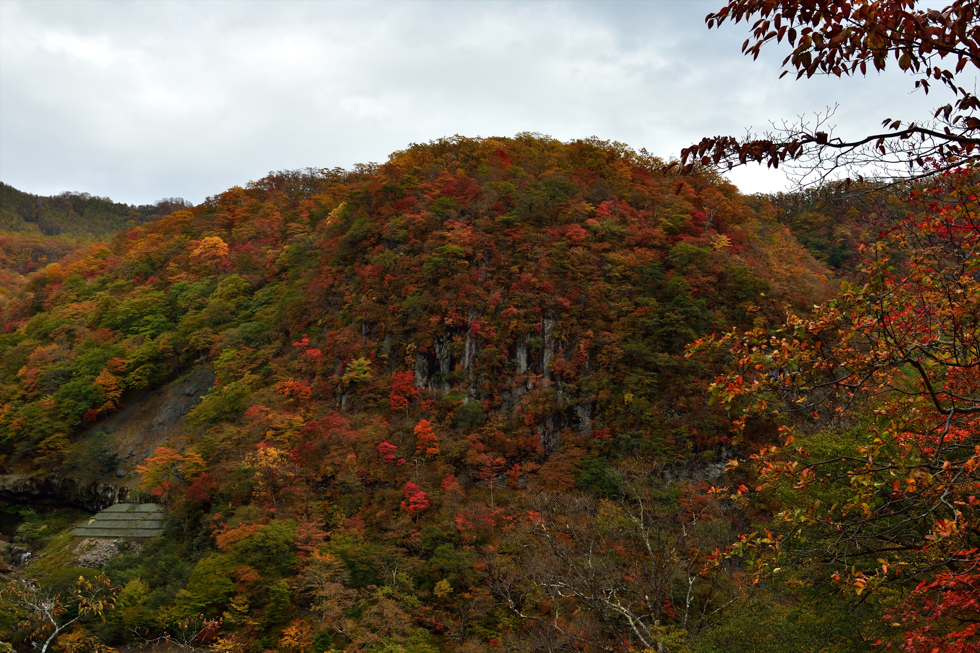 方等滝・般若滝方面の斜面と屏風岩もきれいに色づいています。