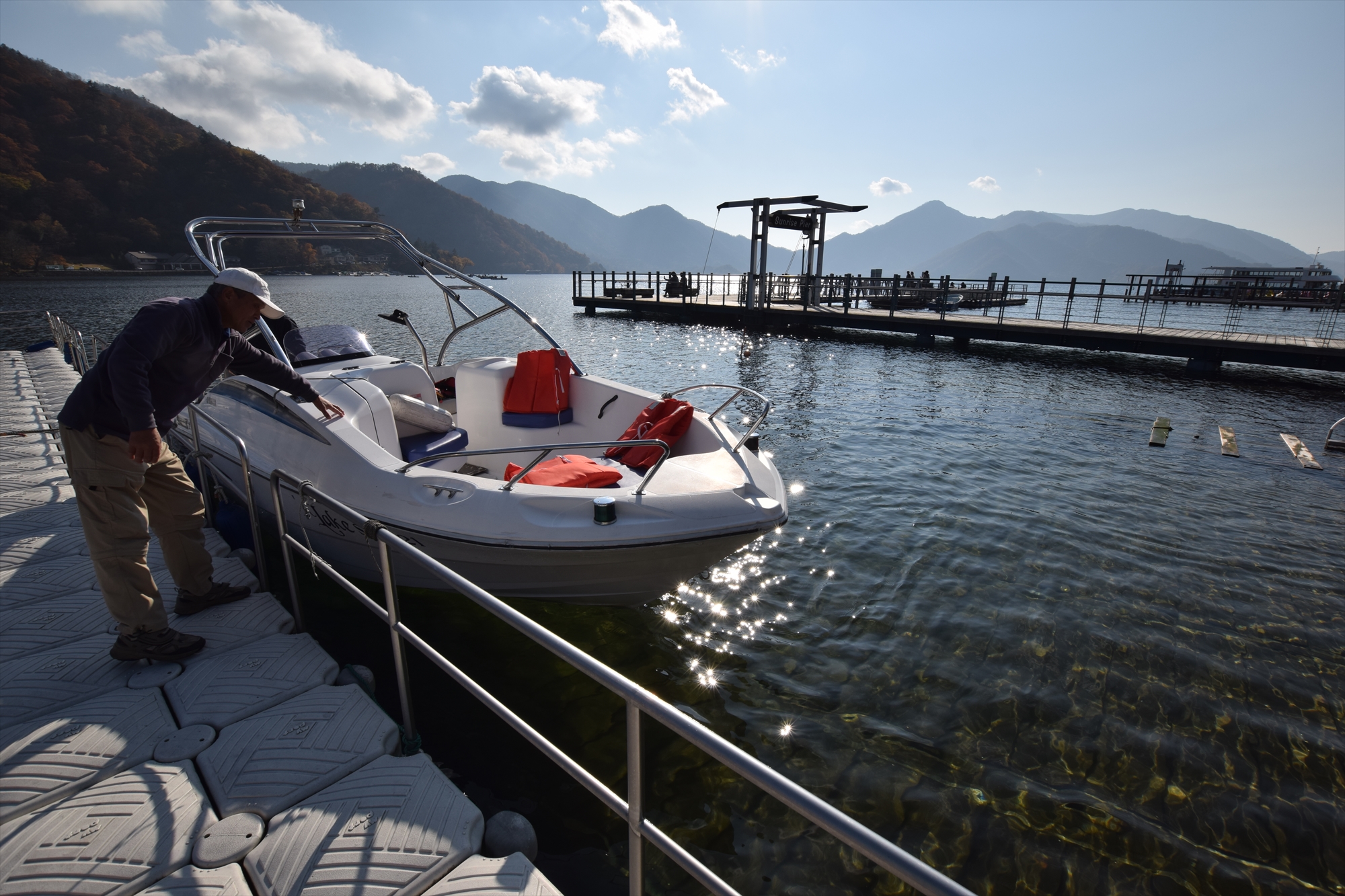 今回は、モーターボートに乗って紅葉の様子をみてきました。