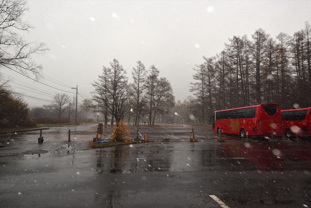30日の15時現在、戦場ヶ原では道路の周りが白くなり始めています。