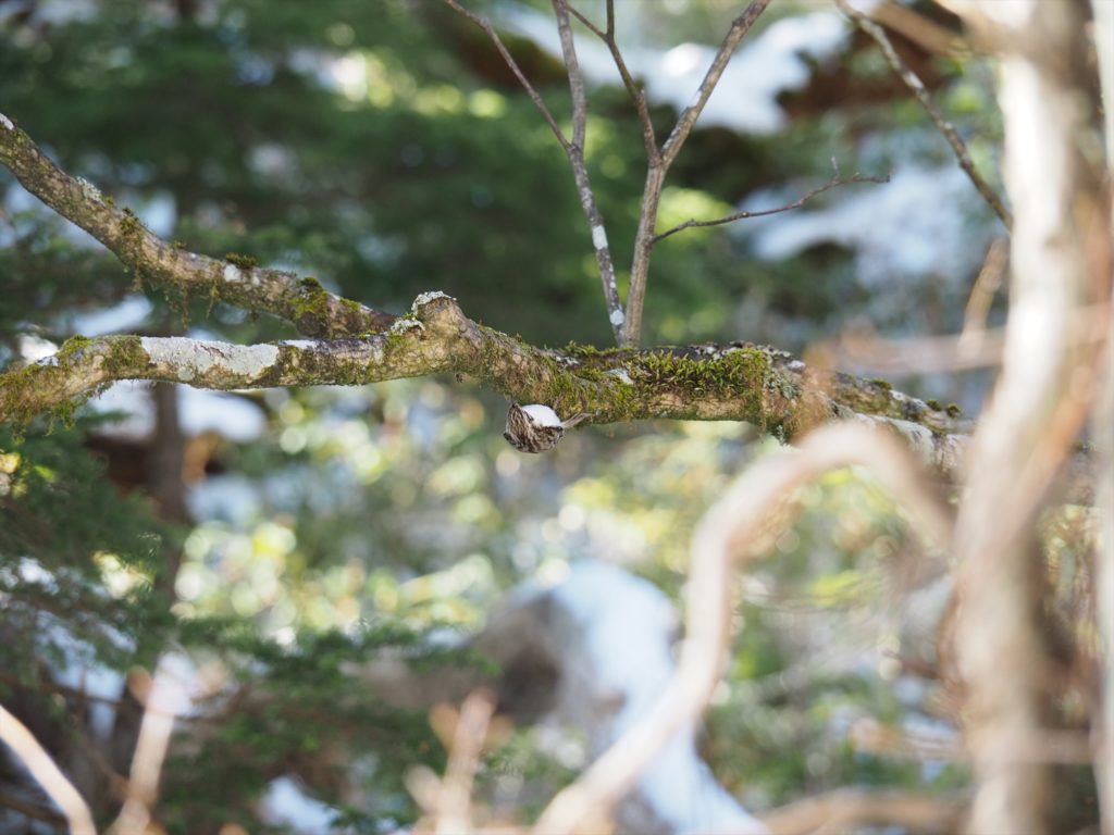 また、歩いているとこの季節に良く目立つヒガラ、ヤマガラなどのカラ類の混群の中にキバシリが得意の逆立ちをしながらせっせと餌探しをしていました。
