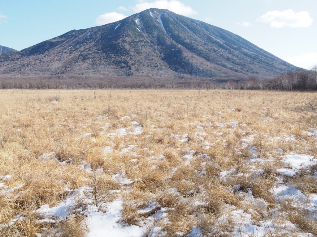 赤沼~ワタスゲデッキ(V字型に木道が飛び出しているデッキ)間は深くて5cmほどの積雪はあるものの、まだトレッキングシューズで十分歩けます。