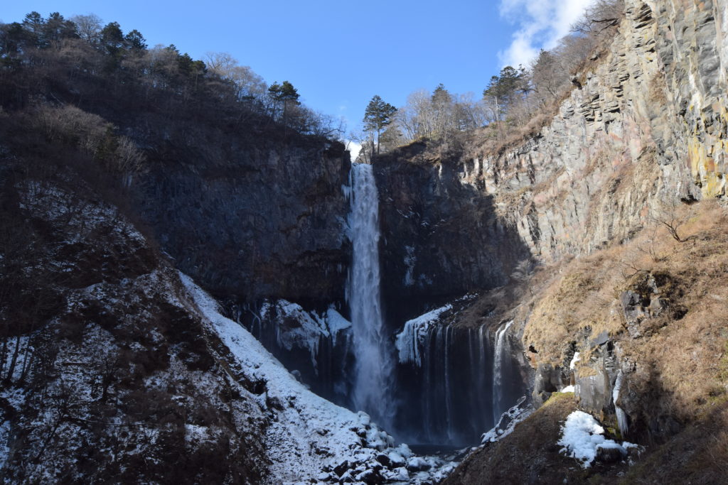 今回は午前中に、博物館の近くにある華厳滝に行ってきました。お天気は良かったのですが、風が吹いていてだいぶ寒く感じました。
