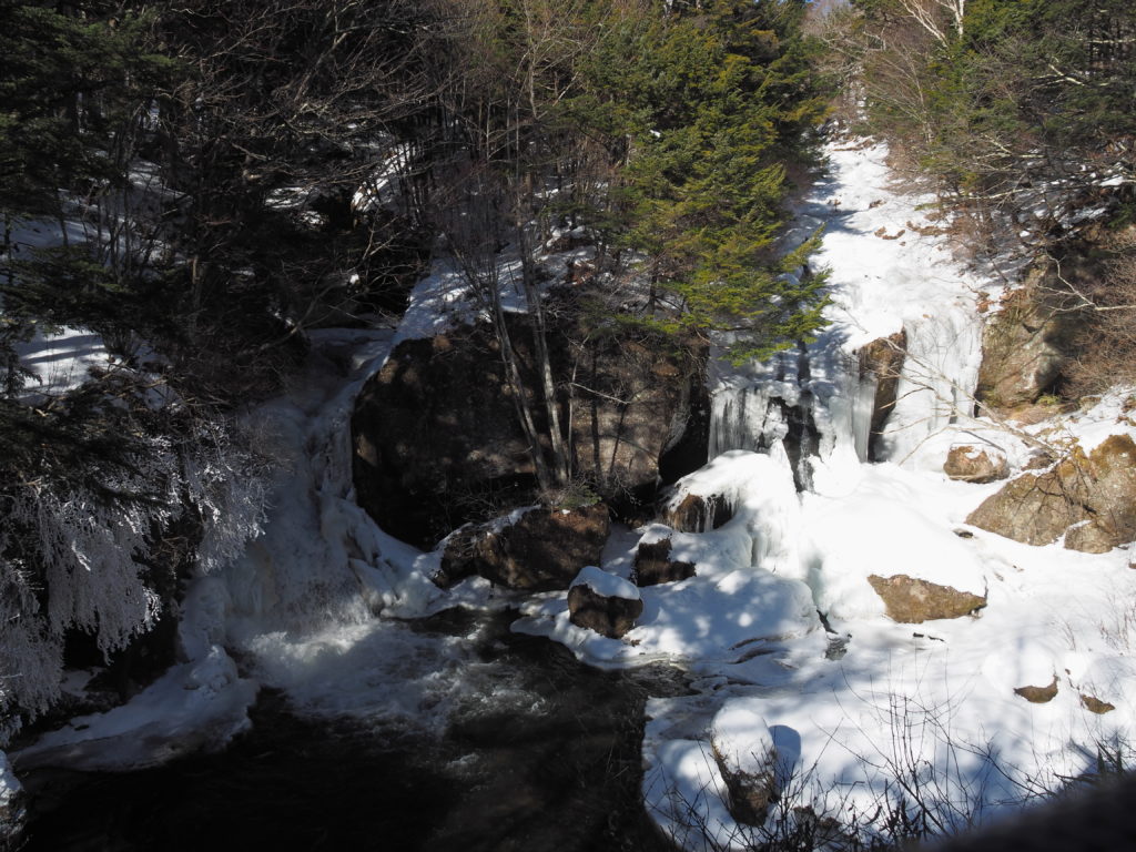 竜頭滝中段、上段へ続く階段は圧雪によってつるつるの滑り台のような状態になっているのでご注意ください。(足)