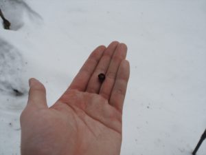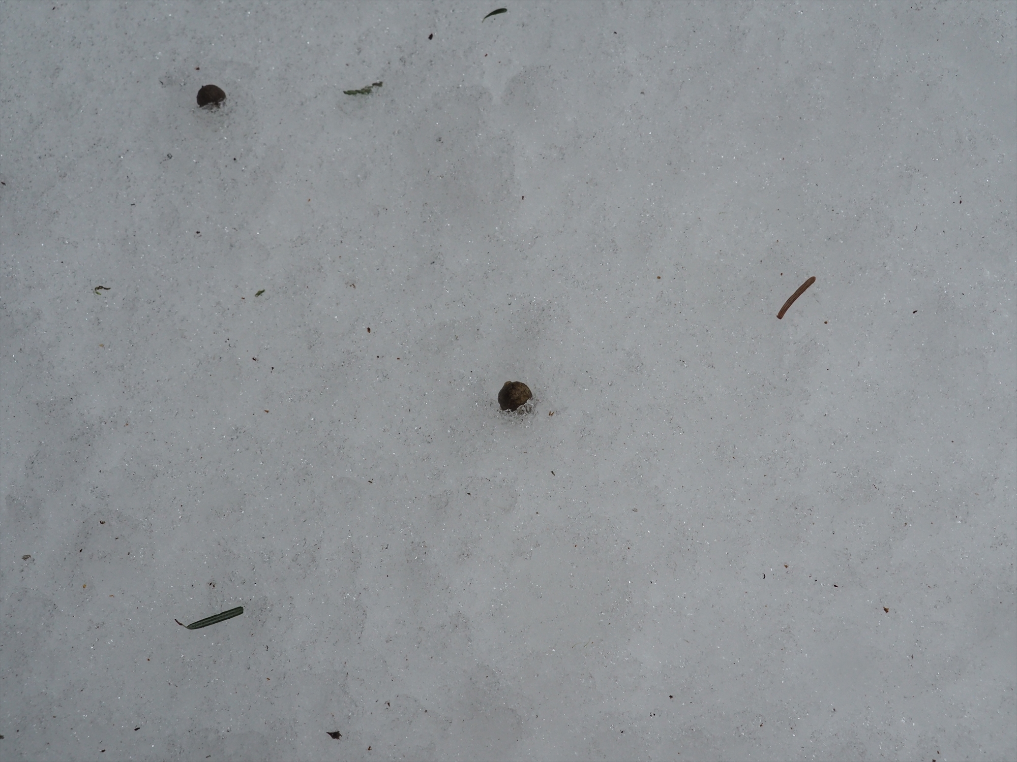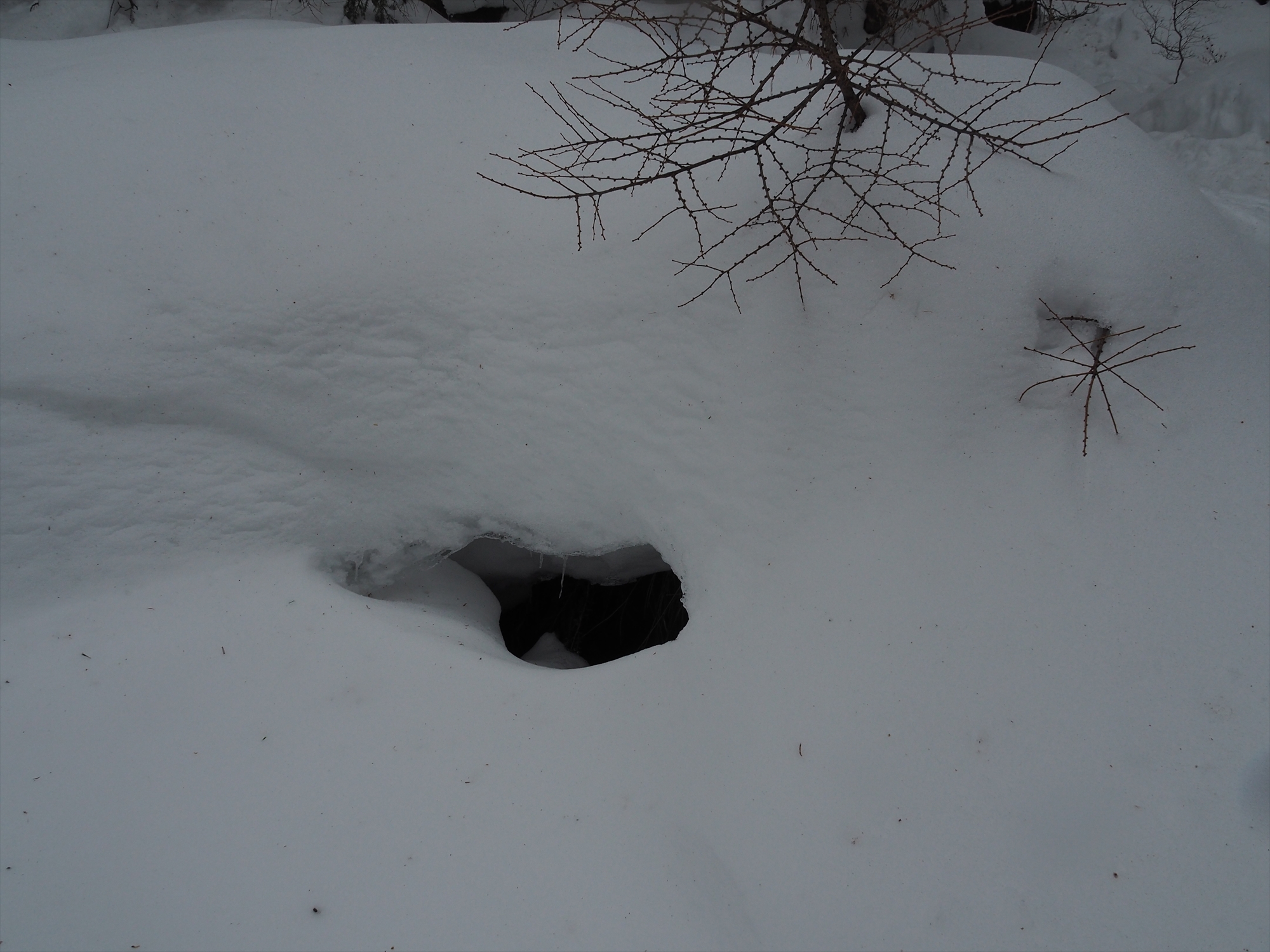 不思議に思いその入口を観察してみると、どうやら大きな石の上や倒木に雪が冠雪し山型に、それが風や溶けた水などの影響でぽっかり口を開けているのだろうと推測しました。