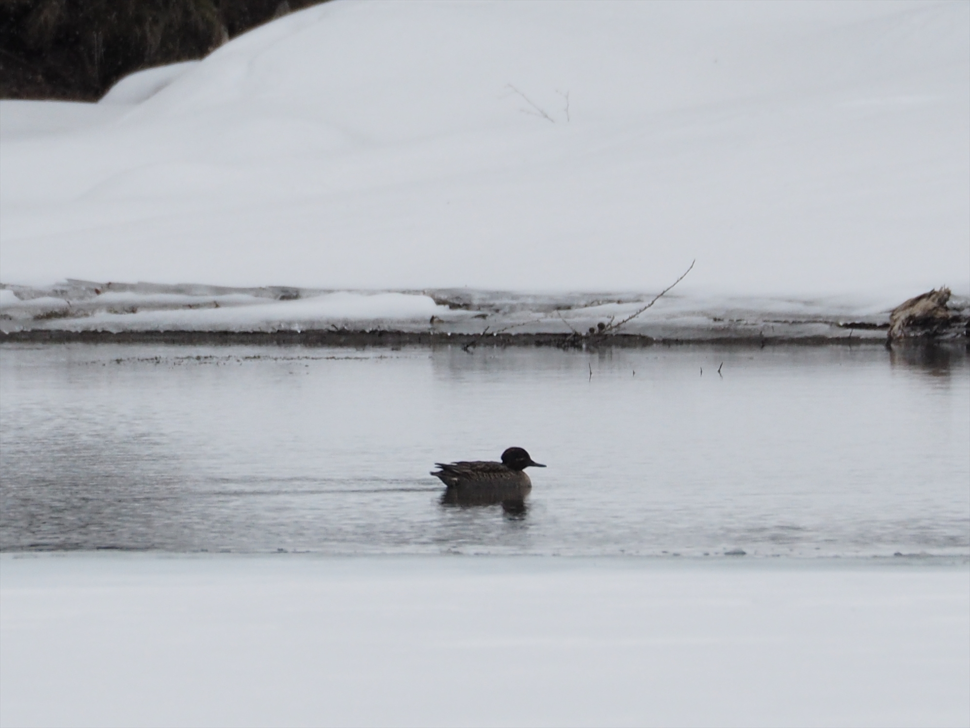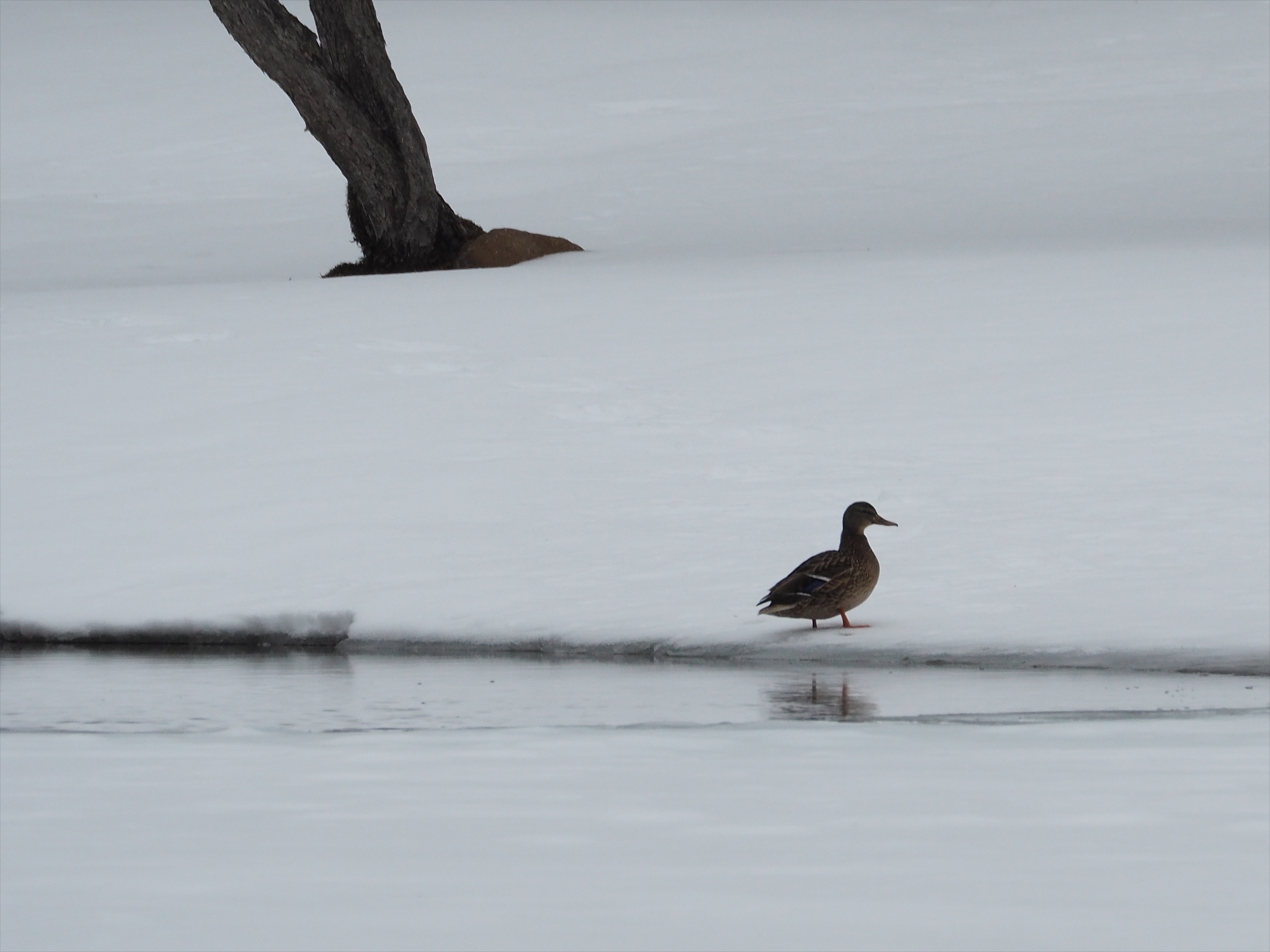 マガモ、コガモ、ホシハジロが一羽ずつこの湖を占領していたようでしたが、人の気配を気にしてか、ホシハジロ以外は飛び立ってしまいました。
