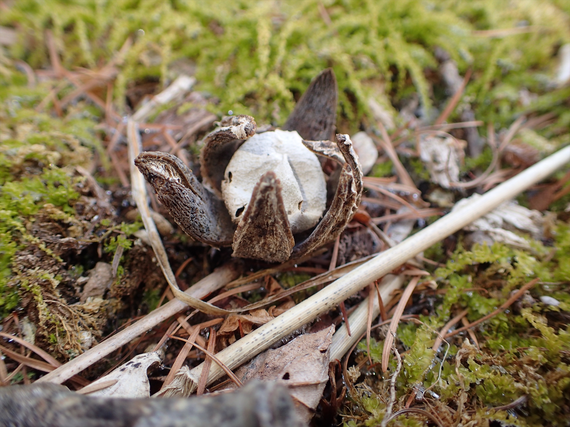 上の2枚目の写真は溶けだした地面にいたツチグリというキノコの仲間です。