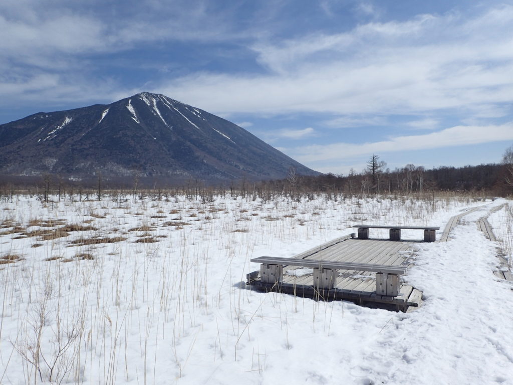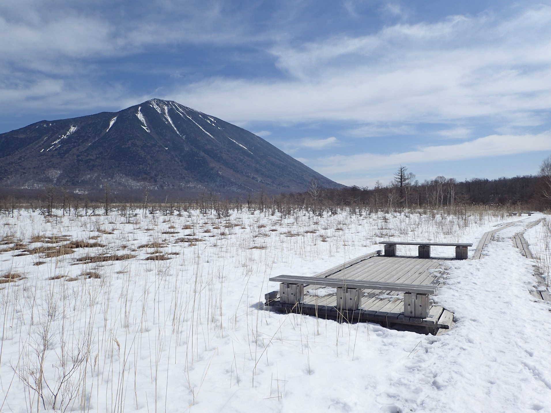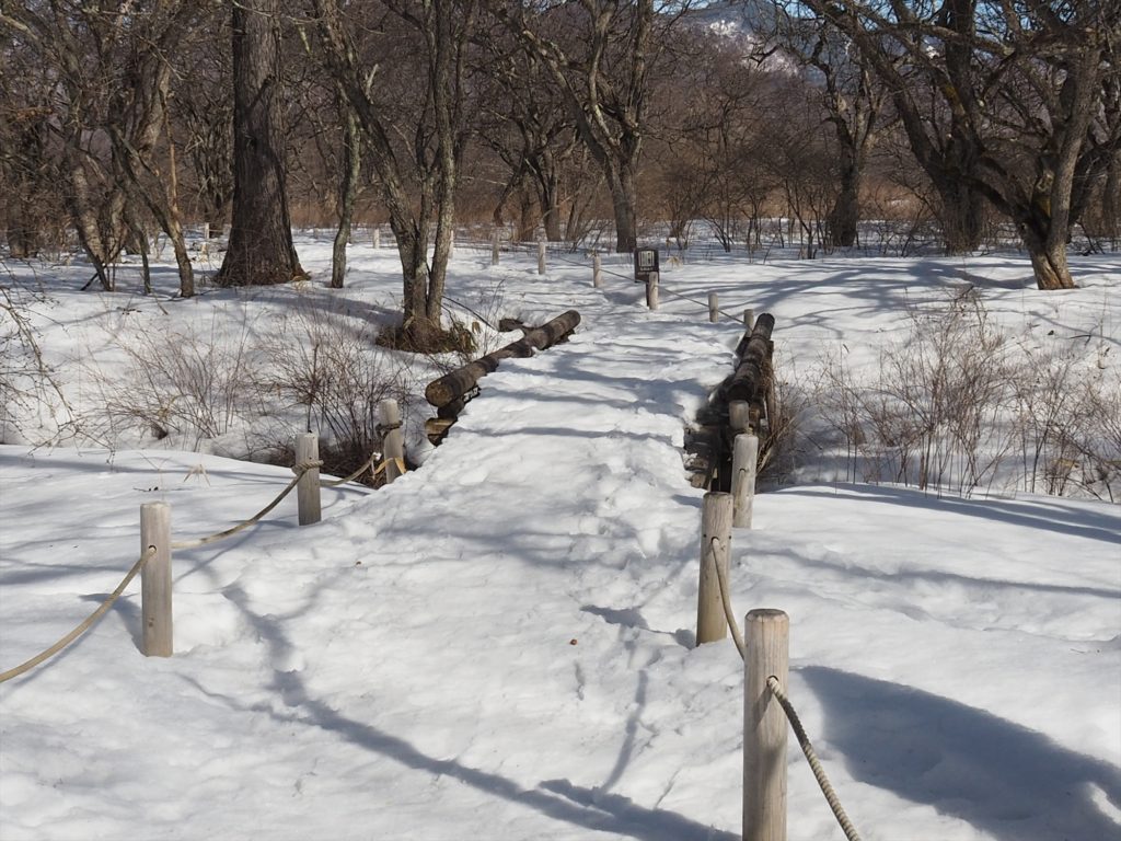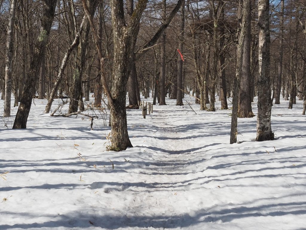 木道上には10~20cmほどの踏み固められた雪があり、沈みこそしないですが登山靴では滑りやすかったです。