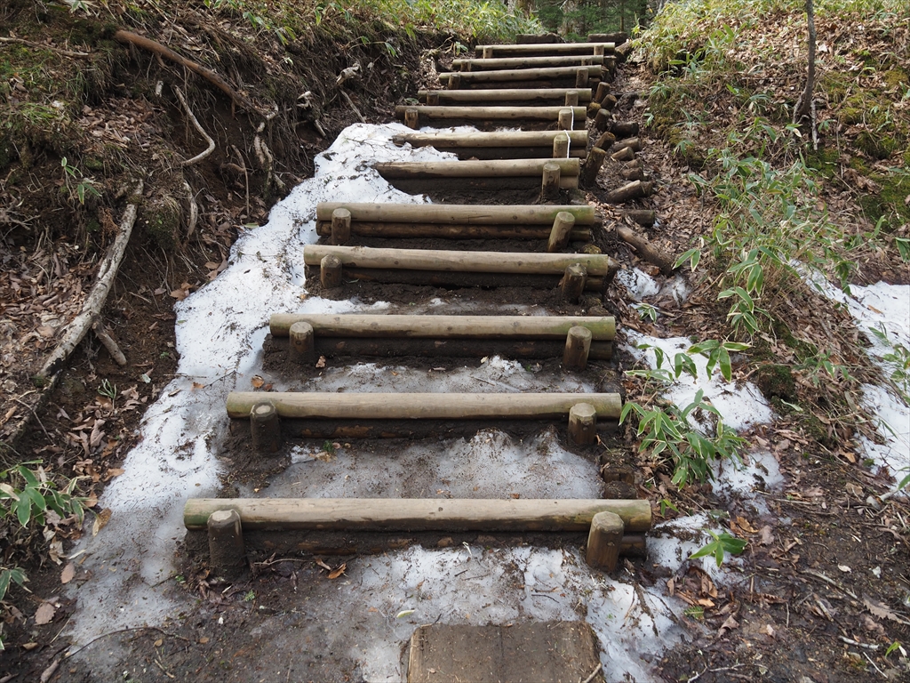 湯滝~北戦場分岐までは、日当たりの悪いごく一部の階段に圧雪+凍結してる箇所がありました。