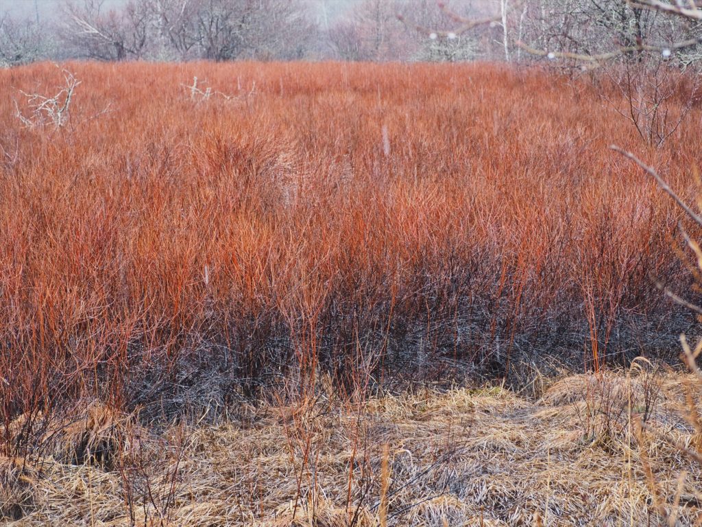 例えば、戦場ヶ原に広がる、低木のホザキシモツケ群落。