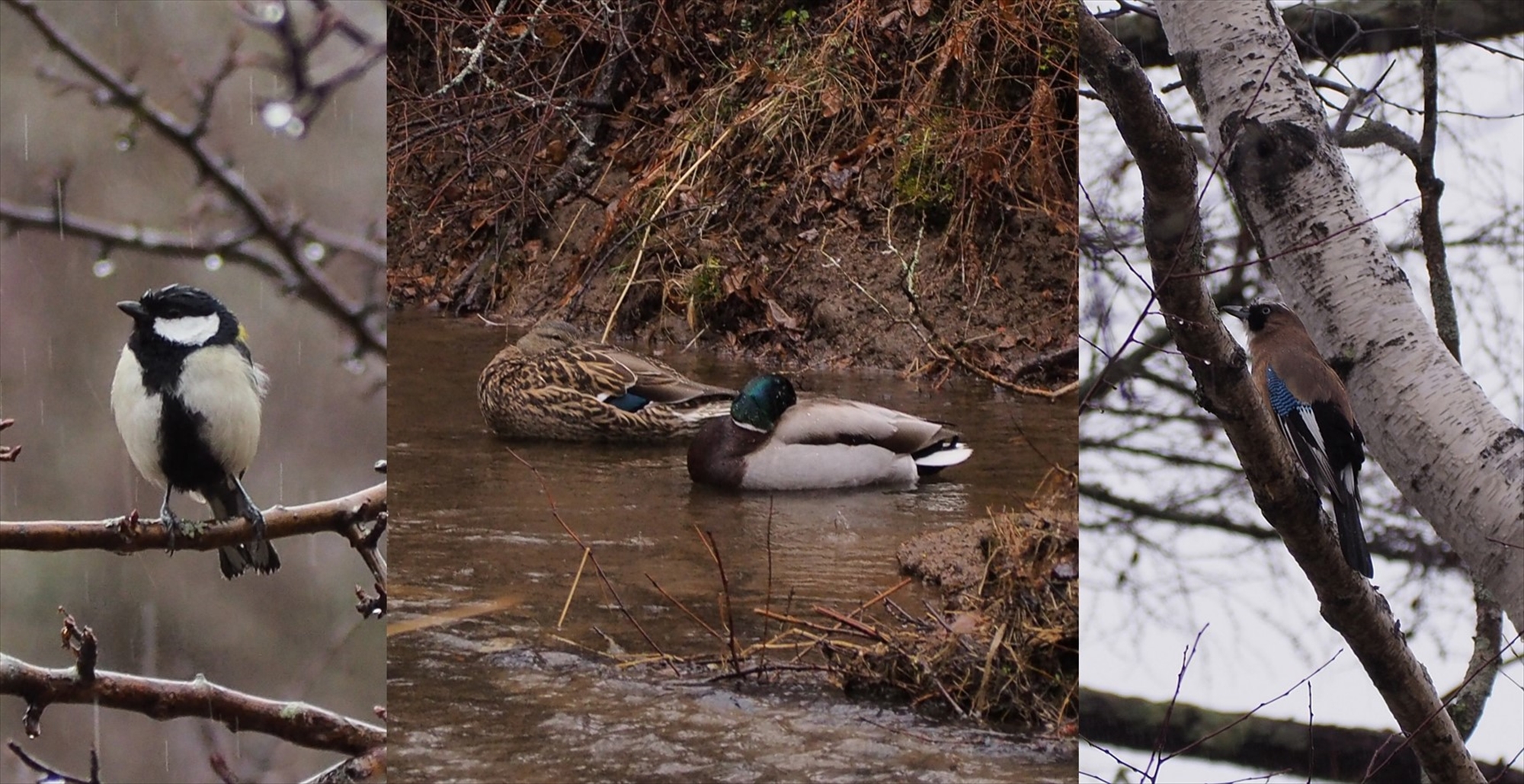 アカハラの先導のおかげか、マガモの夫婦、カケス、シジュウカラやアトリの群れといったたくさんの鳥たちにも出会うことができました。