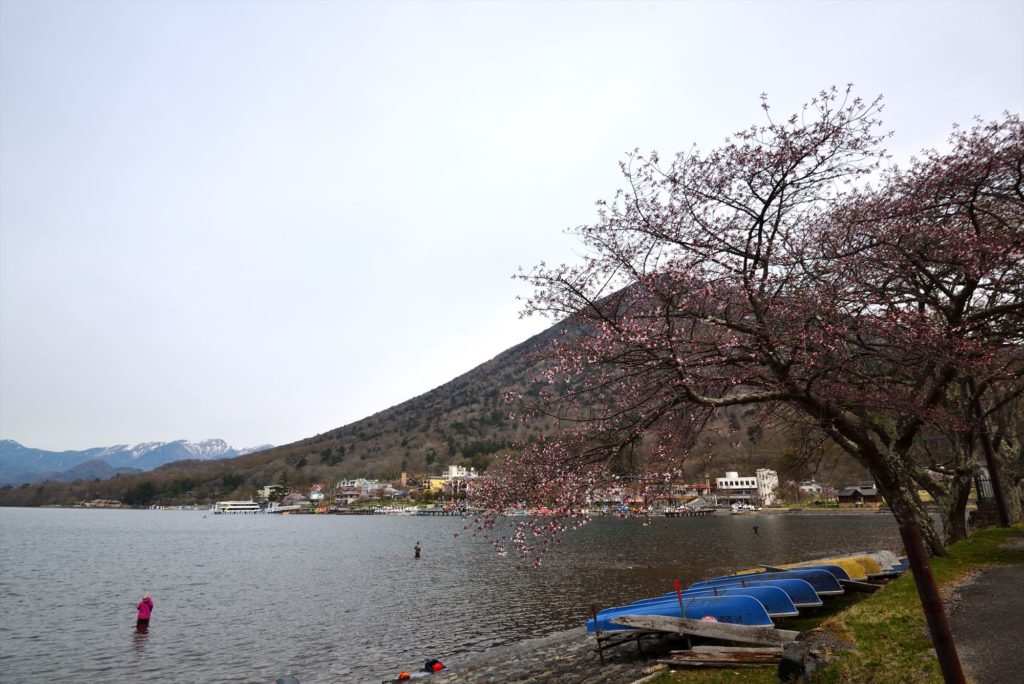 中禅寺湖畔ではオオヤマザクラが咲き始めました。