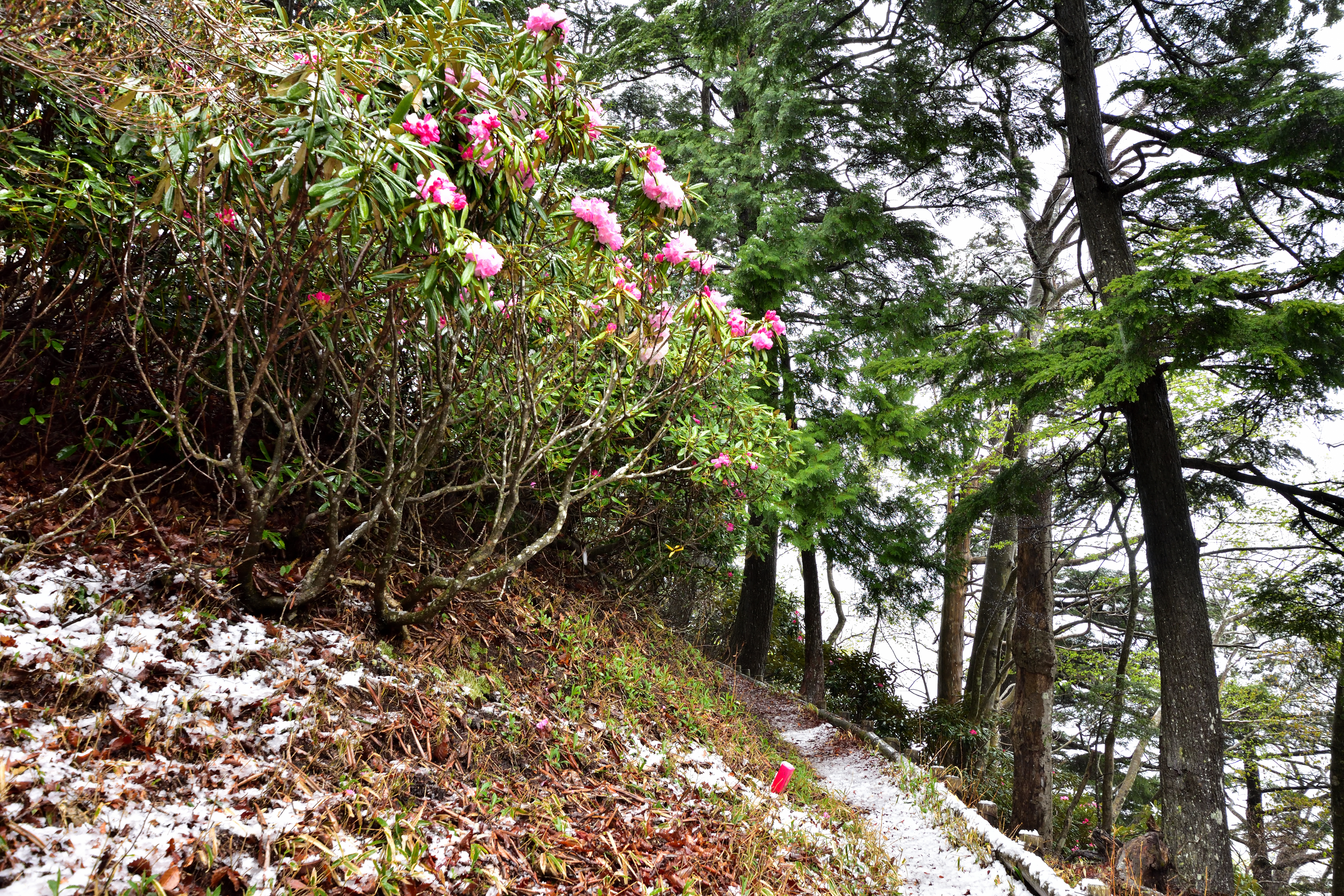 尾根沿いを歩いていくとふんわりとしたドレスのようなアズマシャクナゲが開花していました。