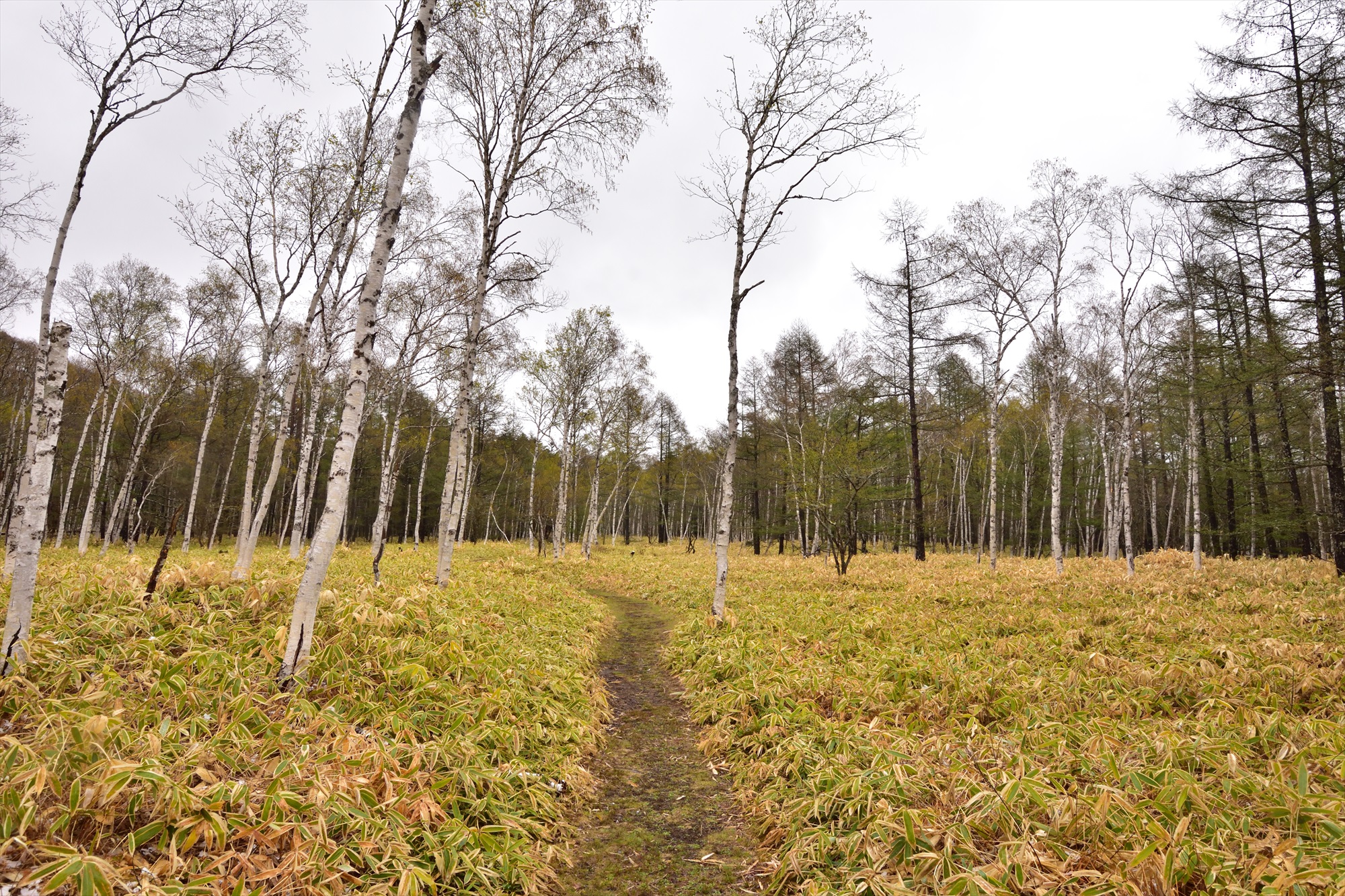 そして、シラカンバの並木を越えて終了!今回はイレギュラーな天気でしたが、それでも植物たちは花を咲かせていました。