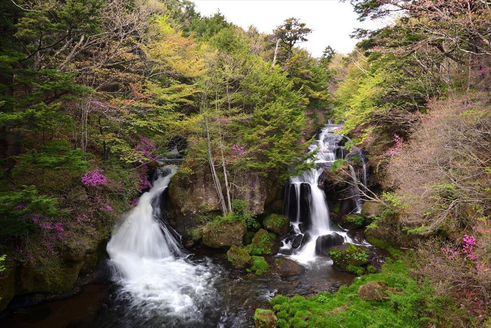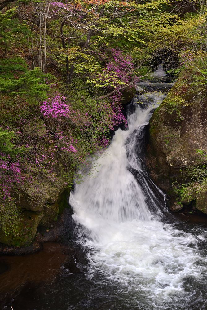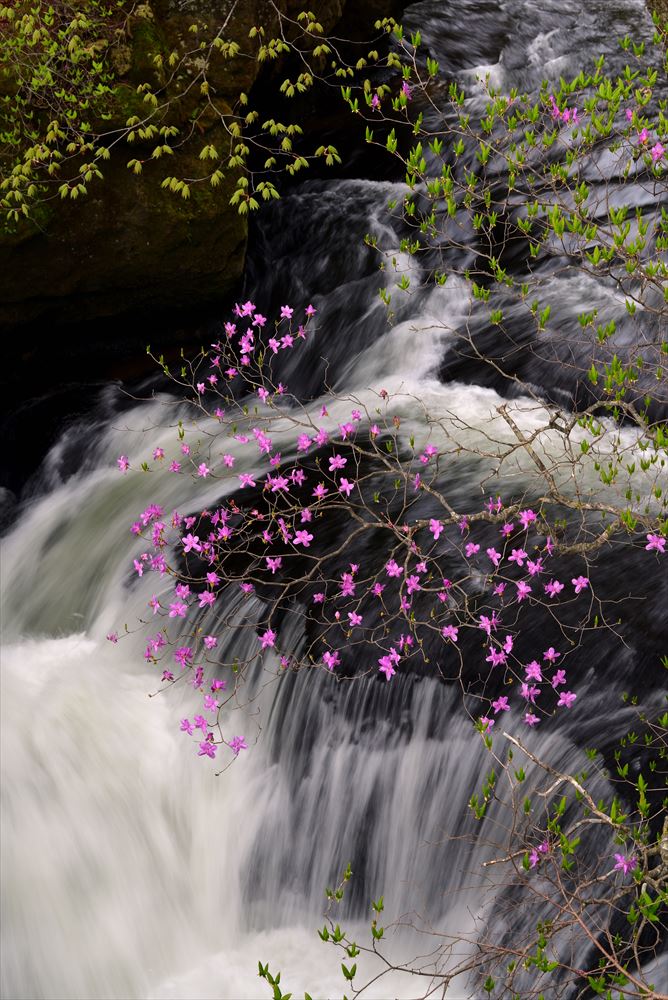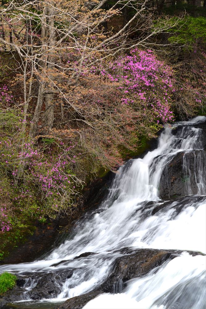 竜頭ノ滝のトウゴクミツバツツジが見ごろを迎えました!