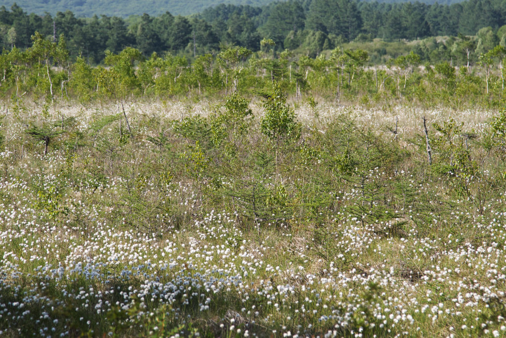 ワタスゲの白いじゅうたんも見頃!