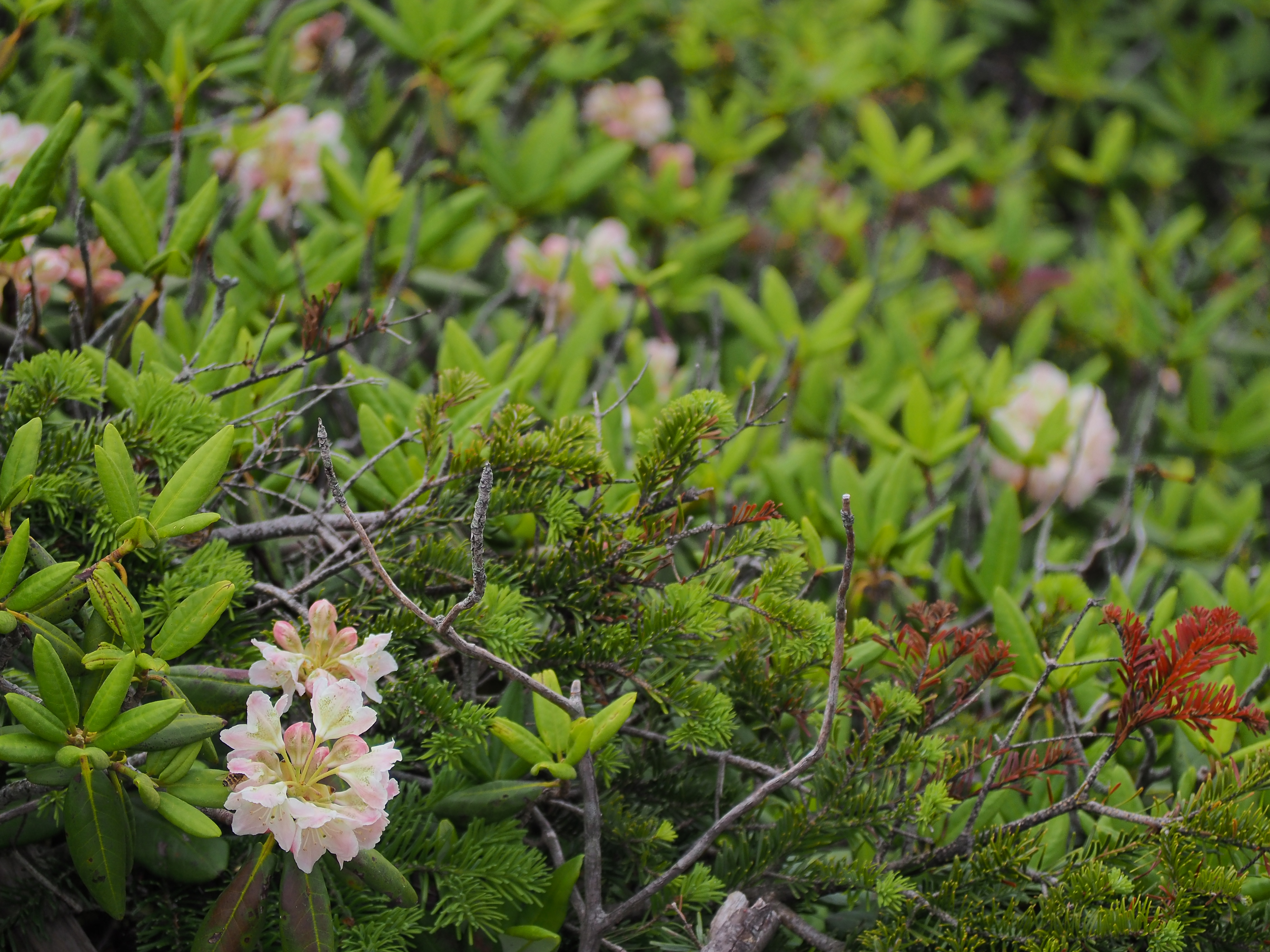 8合目を過ぎたあたりから、ハクサンシャクナゲも多く見られました。つぼみもまだありますが、見頃と言って差し支えないくらいの開花状況です。