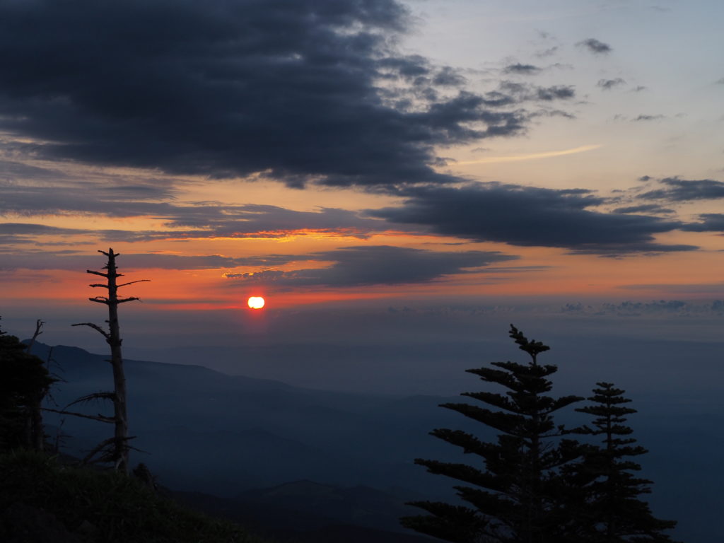 4:48、待ちに待ったご来光です。適度にかかった雲のおかげで、空が端から真っ赤に染まっていきました。