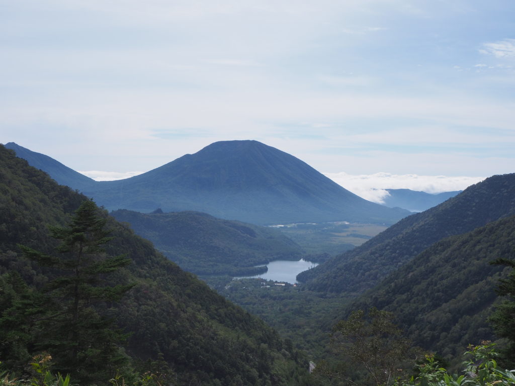 視界が開け、湯ノ湖の全貌や、男体山の西側が見えるようになりました。