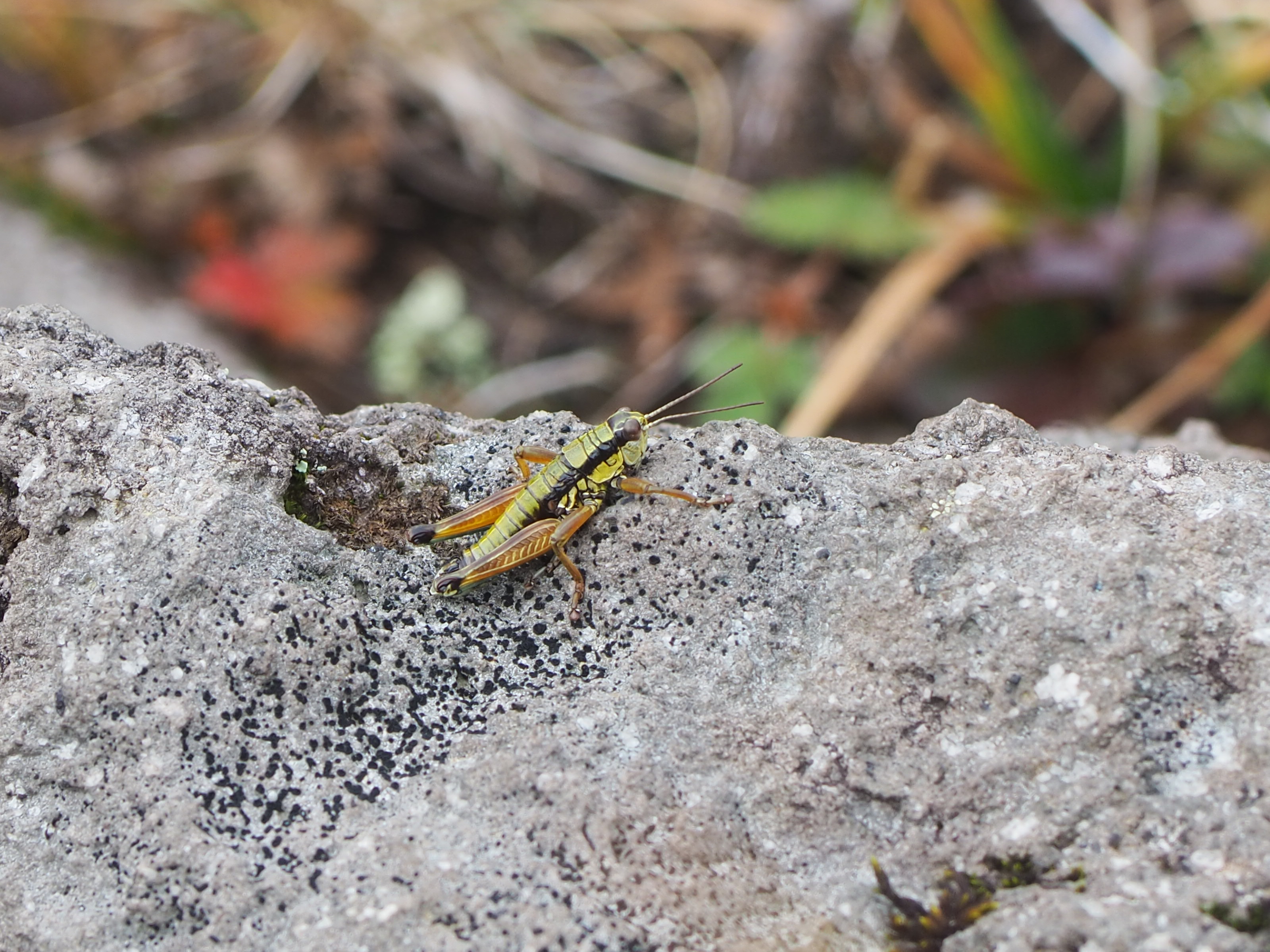 景色については少々残念な結果ではありましたが、足元で小さな出会いも・・・。クサツフキバッタという小型のバッタです。