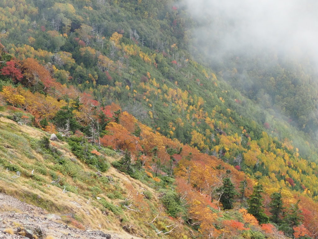 赤黄橙緑・・・・、山の木々が何色にも彩られています。登ってこないと味わえない!こんな景色を一面に見下ろせると、登ってきてよかったな~と思えますね。