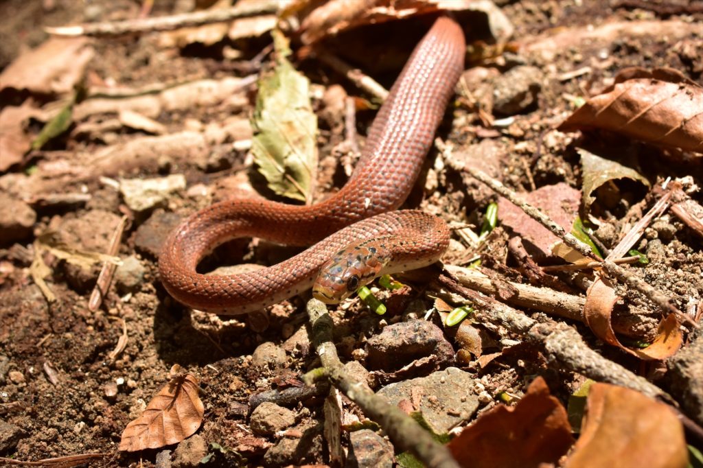 種類はジムグリというヘビで、ローアングルから見ると口元がなんだかにっこりと笑っているような、可愛らしい無害なヘビです。