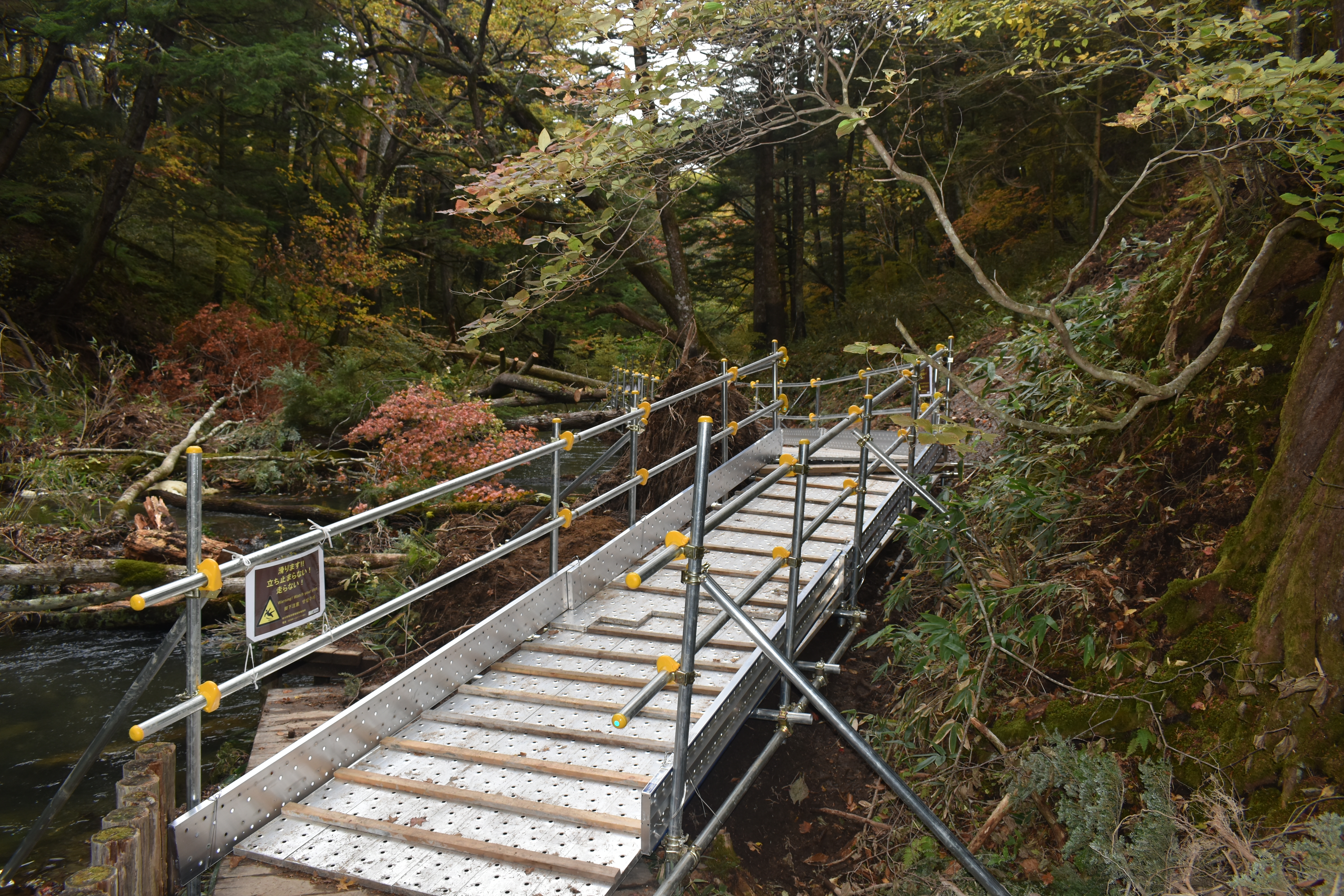 台風24号の影響で木道が流失し不通となっていた小滝~光徳分岐間の遊歩道は、