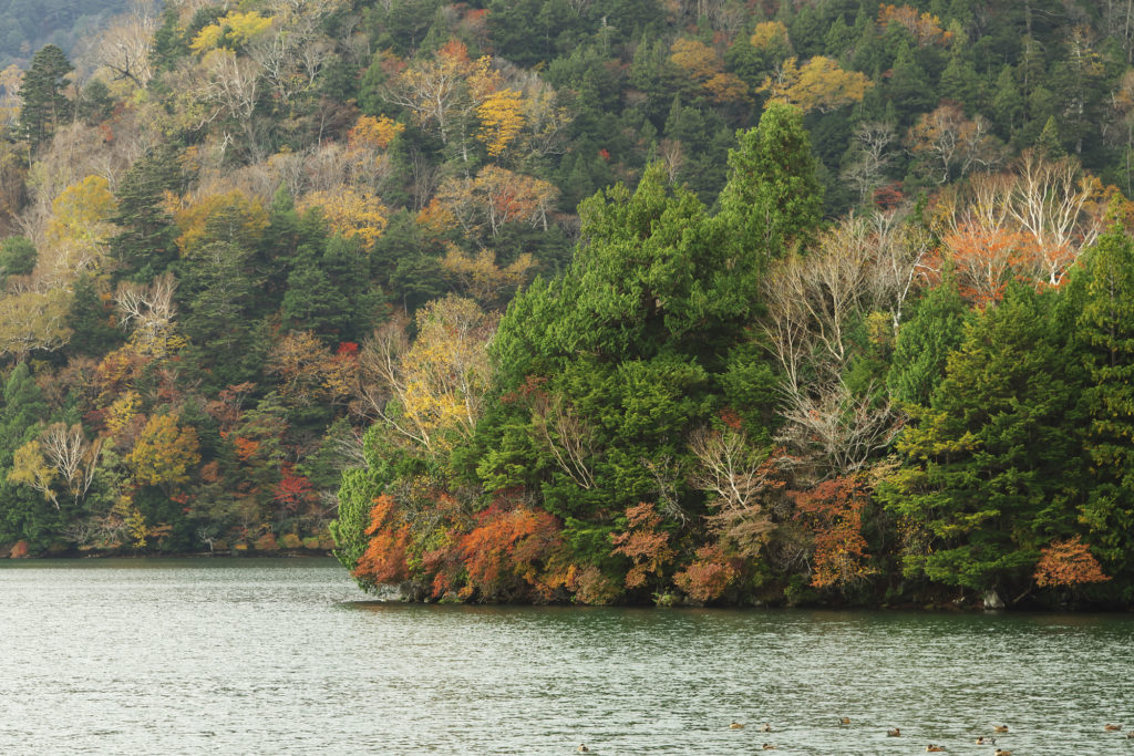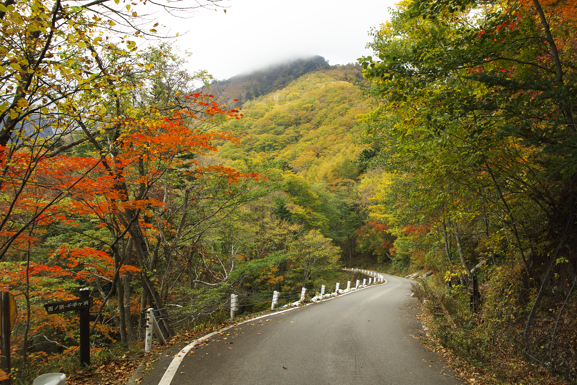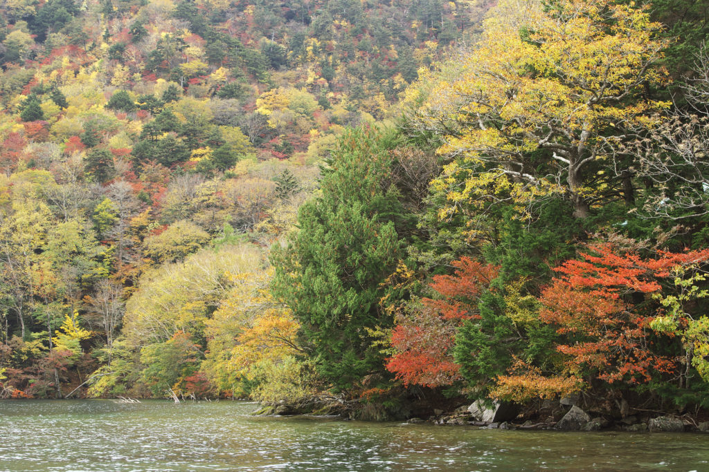 画像はありませんが、湯元温泉から少し上の道路沿いはまだ紅葉っぽさを楽しめます。