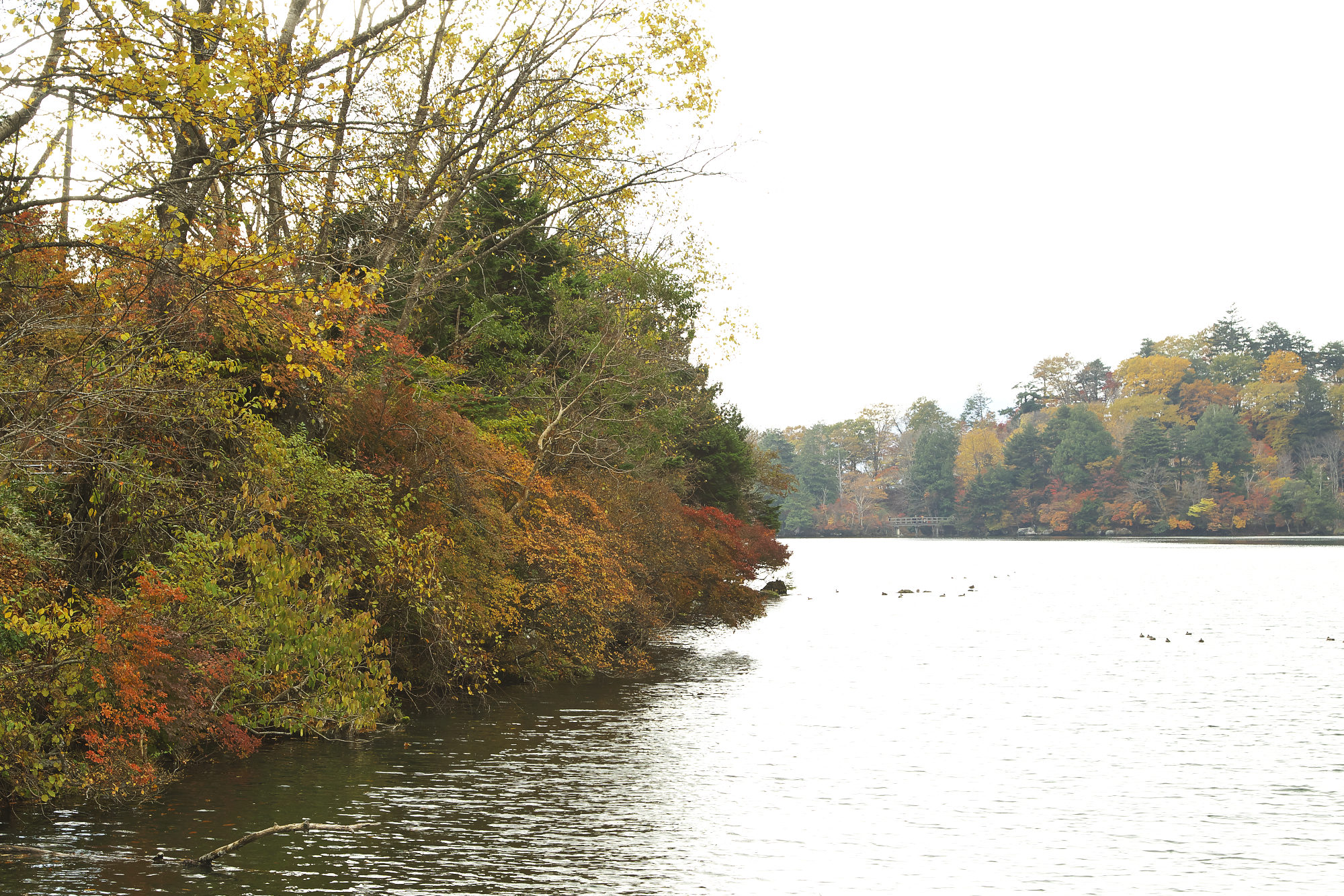 路駐でぐじゃぐじゃに混んでいた湖尻では撮影は断念しましたが、湖尻周辺の紅葉はまだきれいに見えるところも。