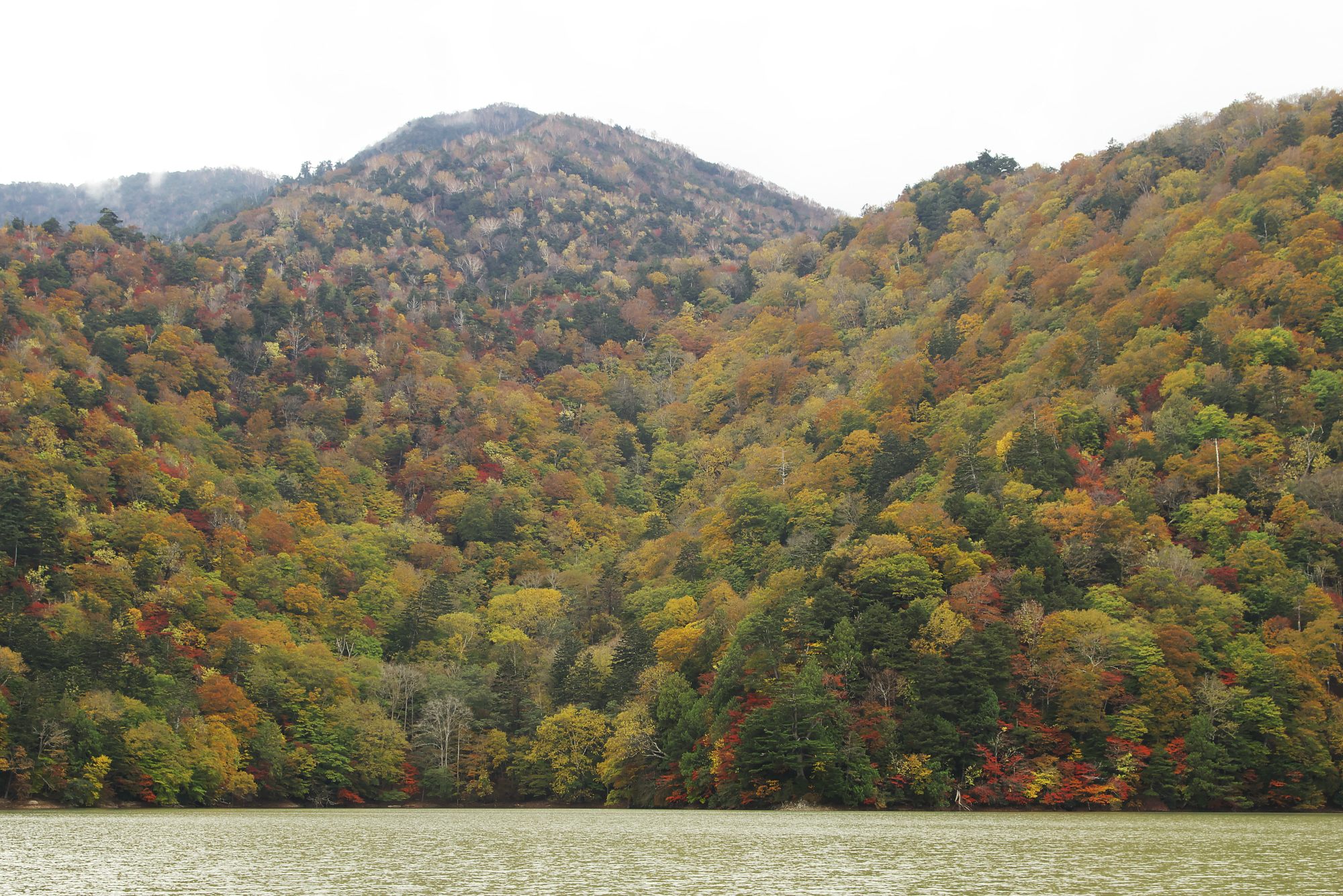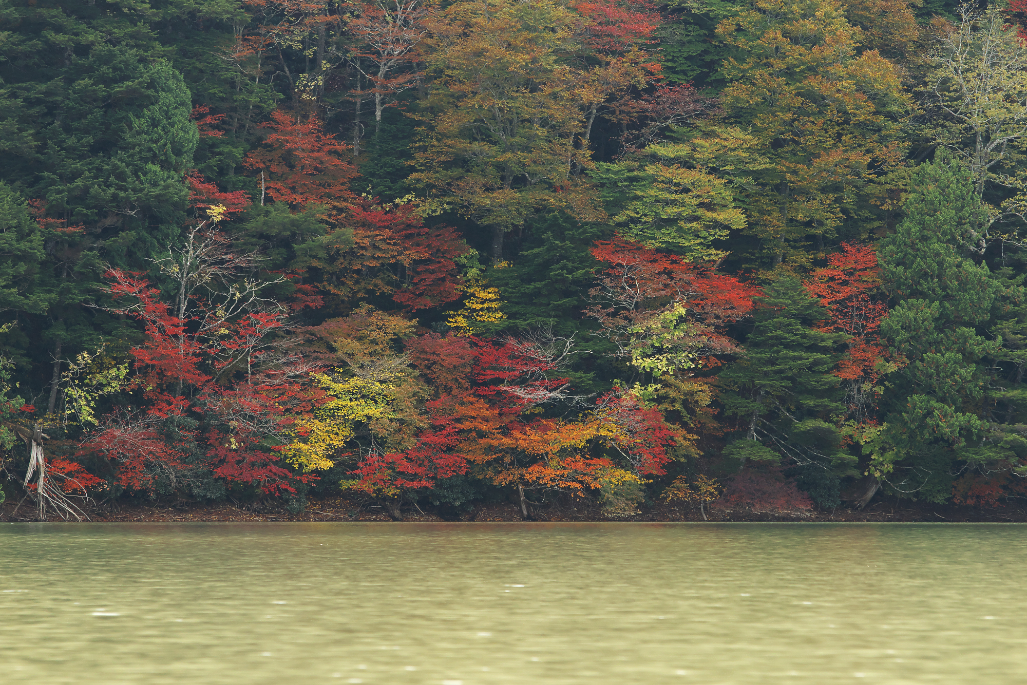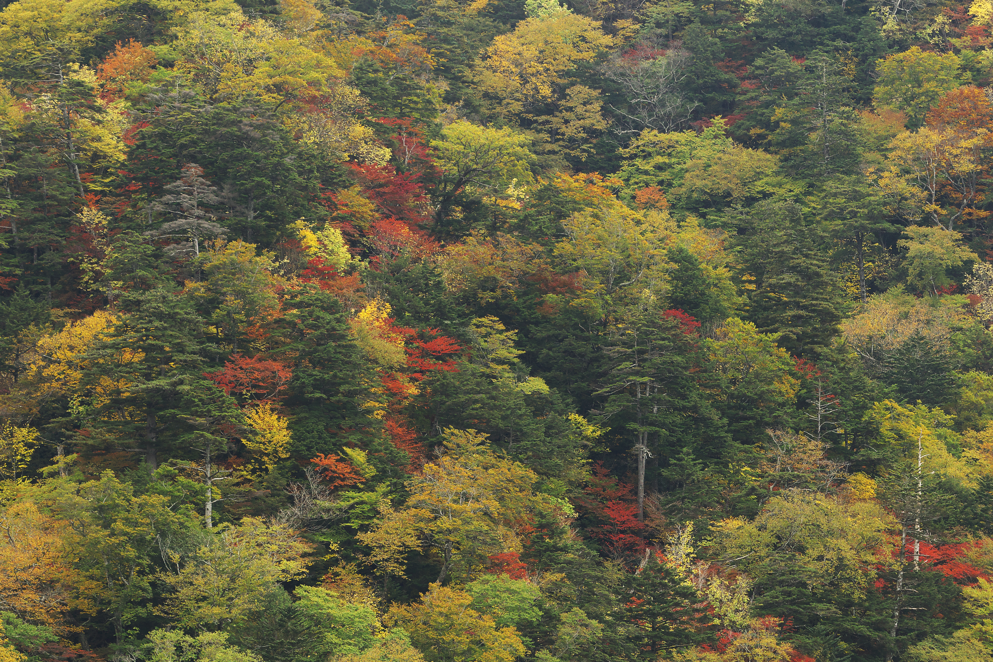 真っ赤になっている一本は奥日光では珍しい(気がする)ニシキギの紅葉。