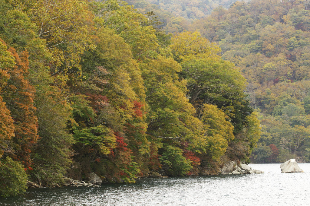 兎島など湖の湯元温泉側はそろそろ色あせてきました。