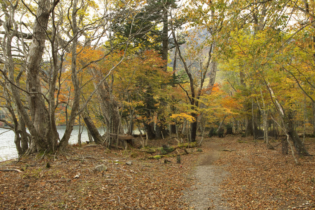 『赤沼駐車場→低公害バス乗車・車窓から紅葉を楽しむ→西ノ湖入口下車→徒歩→西ノ湖→徒歩・千手の森歩道→千手ヶ浜→低公害バス乗車→赤沼駐車場』という動き。