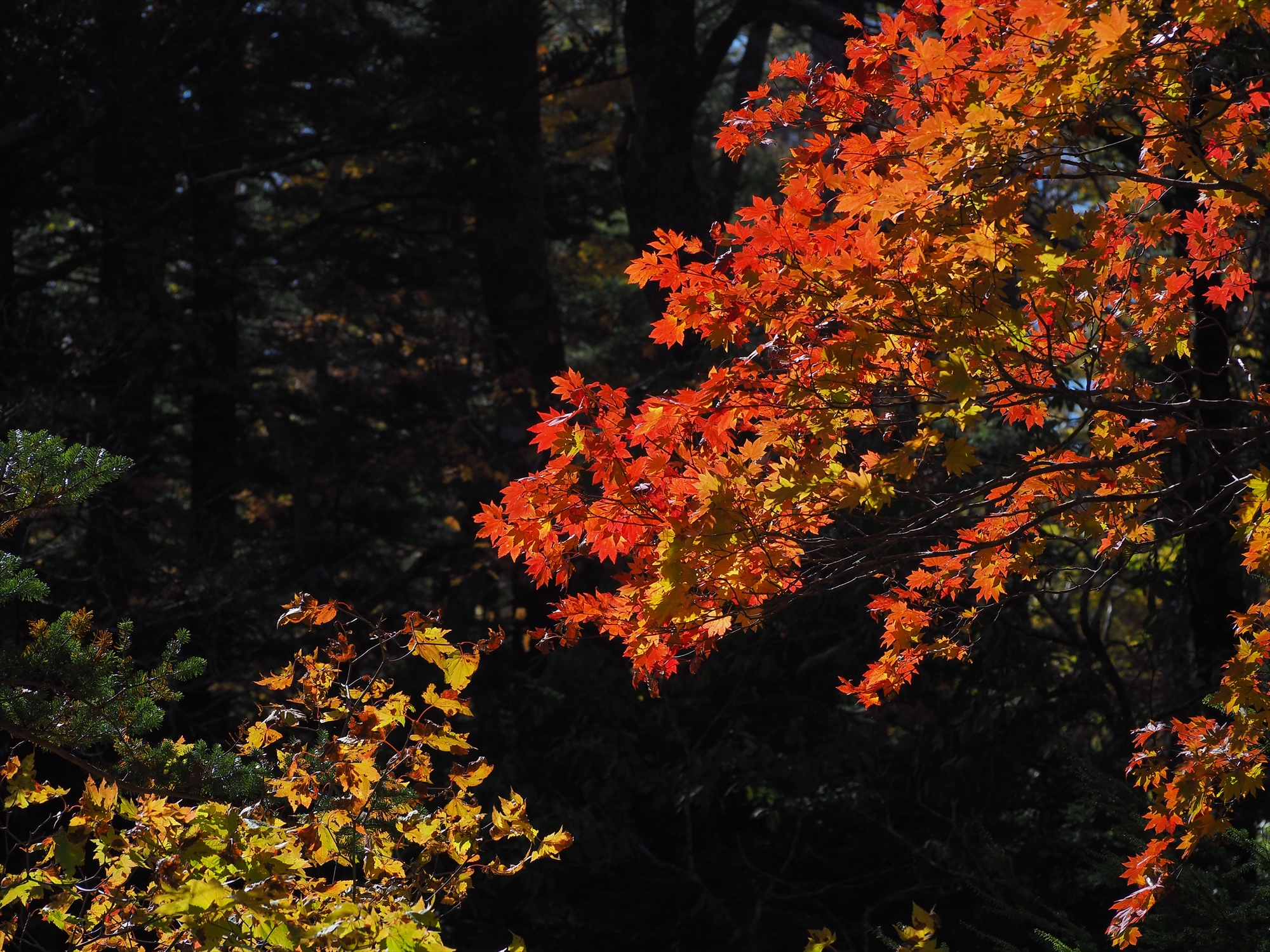 全体としては見頃ピーク過ぎ。ミズナラや日当たり良いカエデ類がややボリュームダウンしていますが、木道沿いにはこれからきれいになるカエデ類もまだ多い様子。
