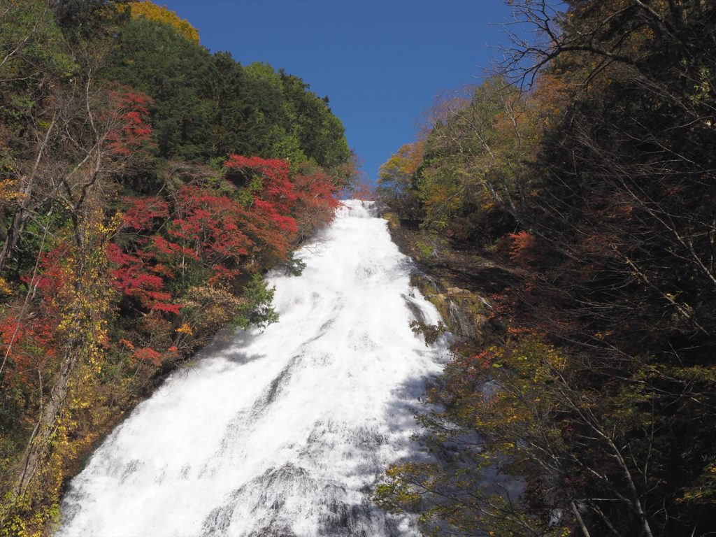 滝の周囲だけでなく、滝に向かって左手の斜面や、振り返って下りいろは坂の方面も含め、見頃といった様子。
