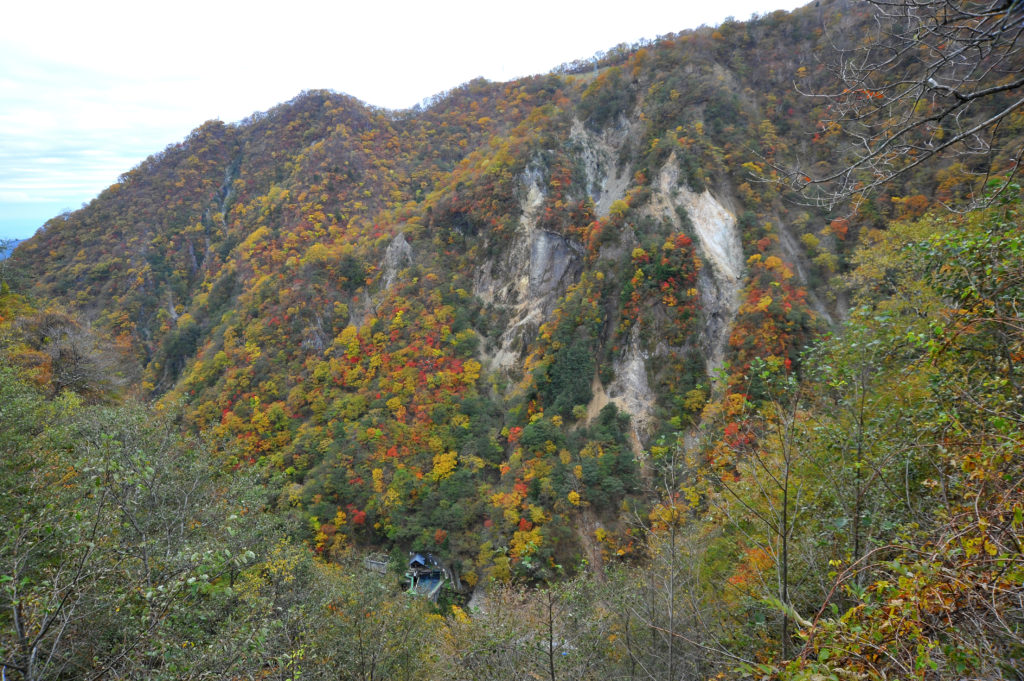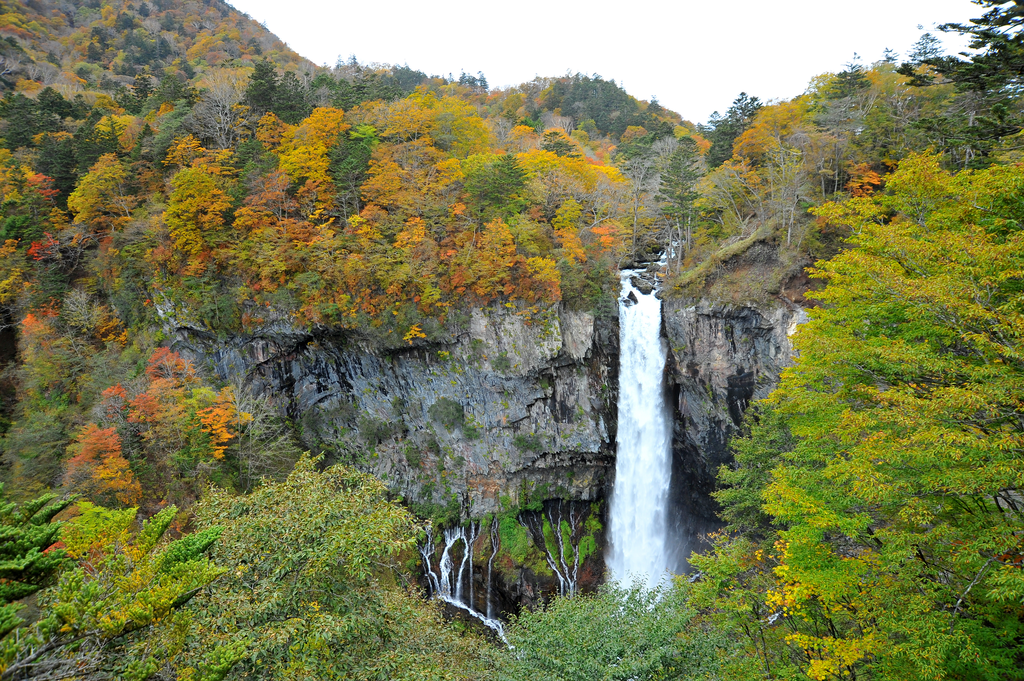 華厳渓谷の紅葉、まさに見頃です!下の方の赤色や黄色がバッチリ!