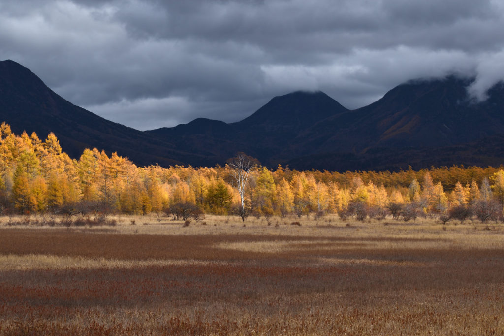 周辺に多く見られるカラマツの黄葉も、広い範囲で見頃に。