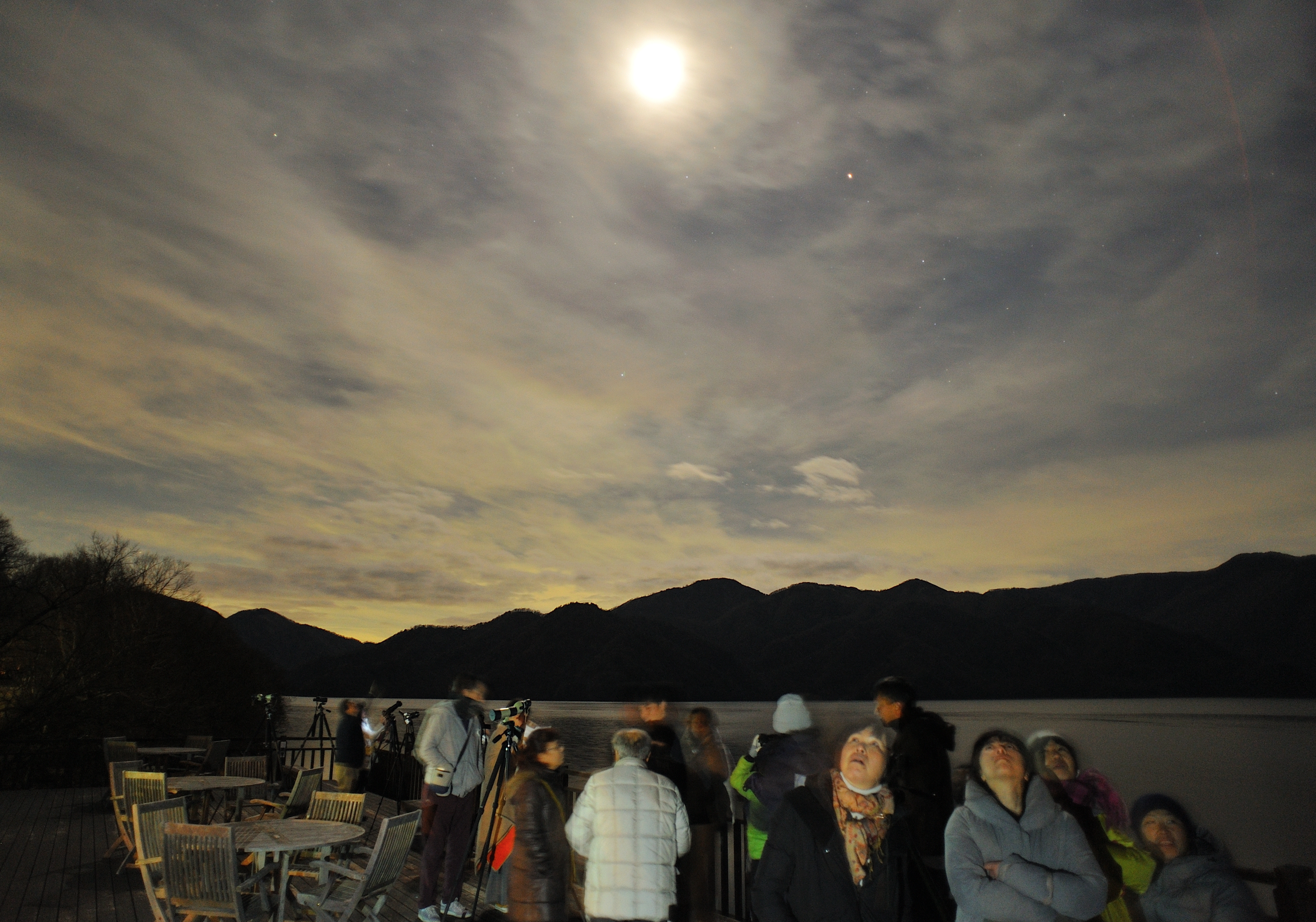 ご参加いただいた皆様、寒い中お越しいただきありがとうございました!「奥日光星ふる夕べ」はいかがでしたでしょうか?会場は普段夜には入ることの出来ない中禅寺湖畔ボートハウスでした。そこから見る星空はなかなか見ることができませんので、このようなイベントをぜひ活用いただければと思います。解説員足立による星の神話の話も、ロマンチックなものやユーモアのあるものもあり、他にどんな神話があるのか気になりますね。また、こちらで用意したフィールドスコープや大型の双眼鏡で火星やプレアデス星団を観察し、星の美しさに感動する方々も多く、そんな様子を見ていた私自身もとても嬉しく楽しい時間でした。参加された方々も楽しい時間を過ごせていただけていれば幸いです。