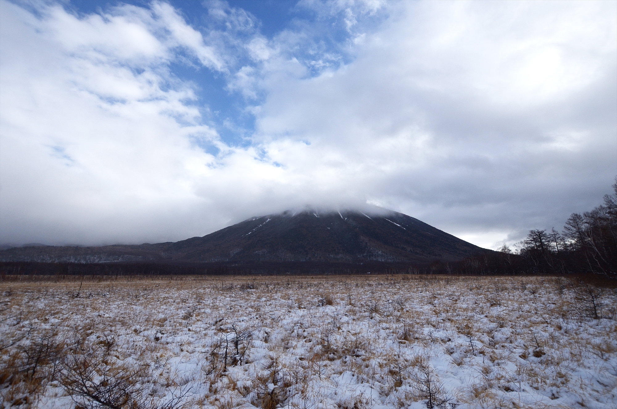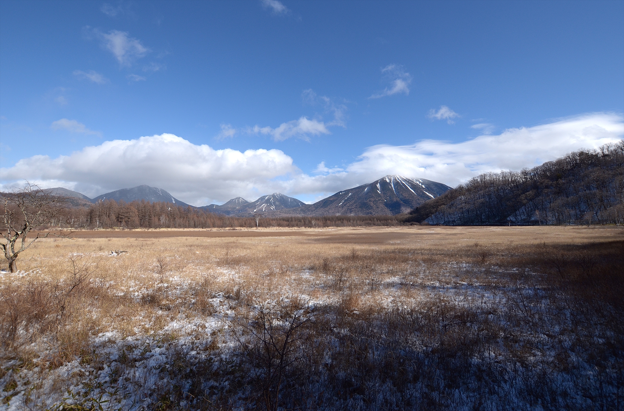 三本松から赤沼まで国道を歩き、自然研究路を15~20分ほど歩いて到着するデッキに出れば、戦場ヶ原越しに男体山もこの通りご覧いただけます。