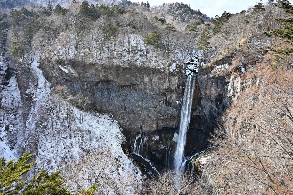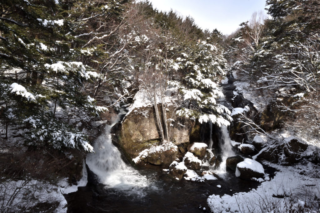 観瀑台はしっかり除雪されていますが、滝横の階段は除雪が出来ない場所ですので、ある程度積もると滑り台のような坂になってしまいます。