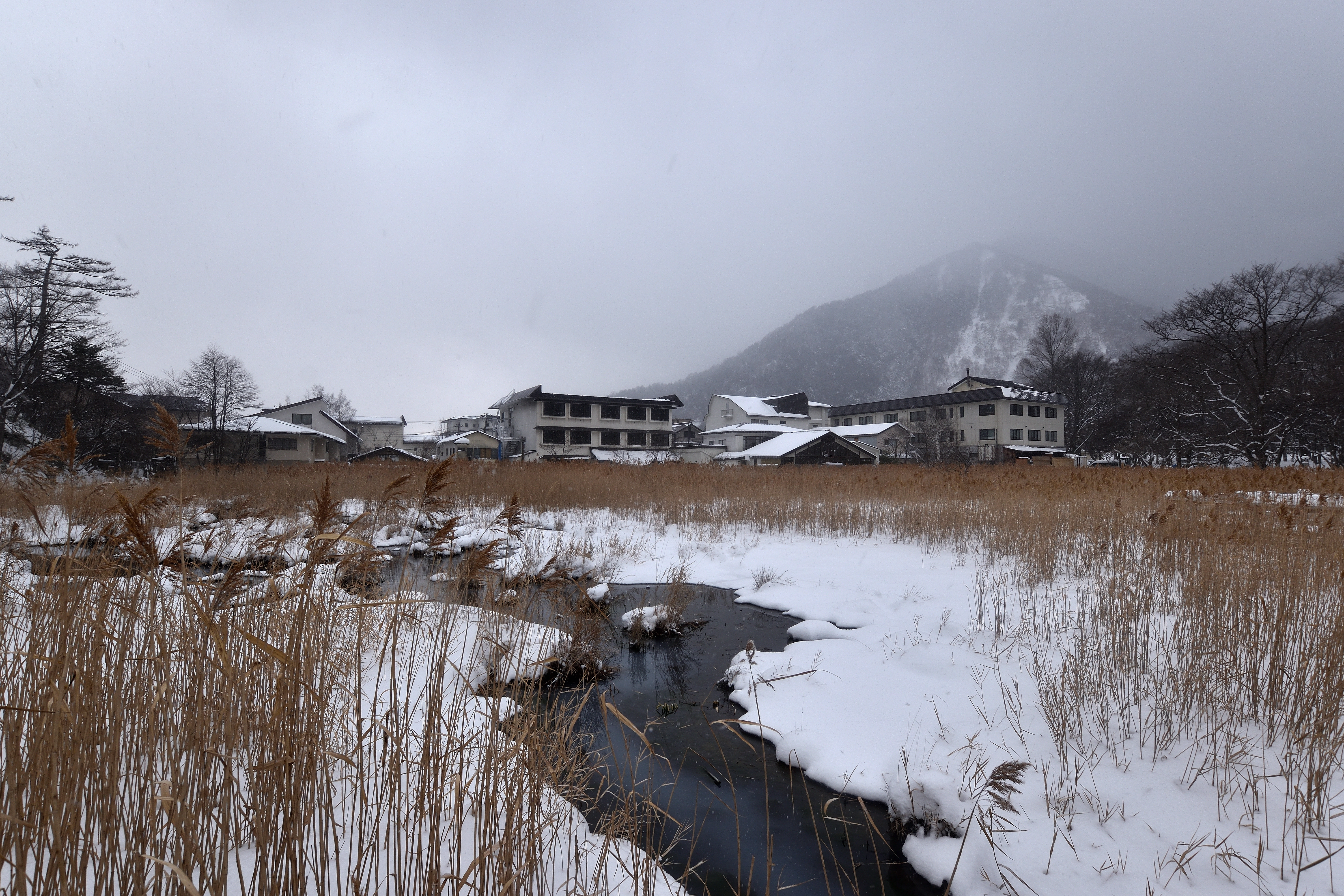 湯元温泉最奥の施設のひとつ、温泉寺への道と、その隣にある湯ノ平湿原を横断する木道は、30cmの積雪。この中ではやはり一番雪の量が多いです。