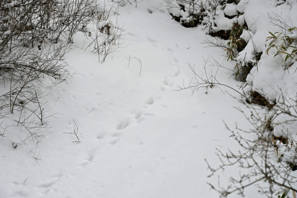 木道の上やその周りには足跡がたくさんありました。