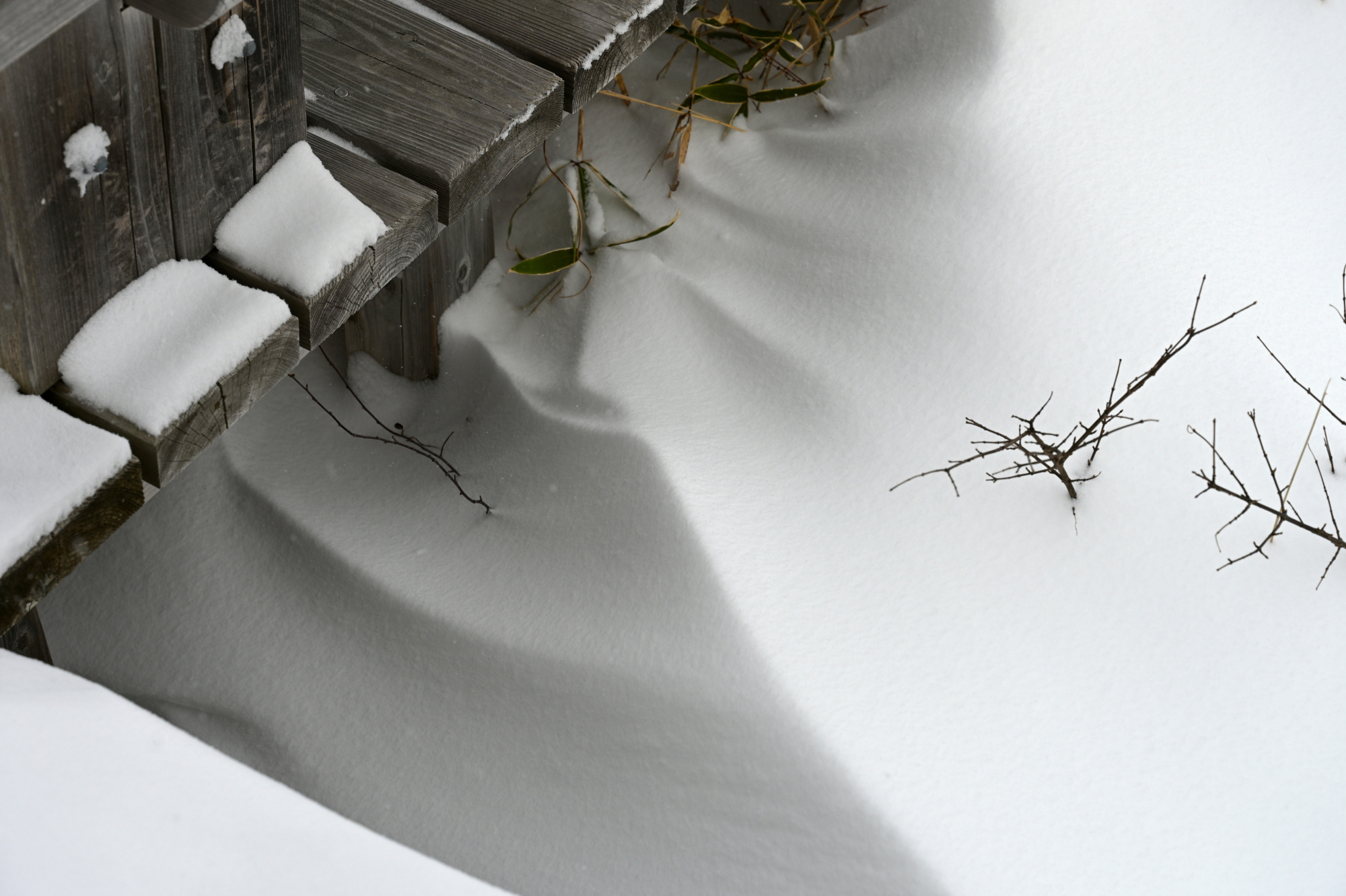 デッキ下の吹き溜まりがちょっと芸術的な模様に。