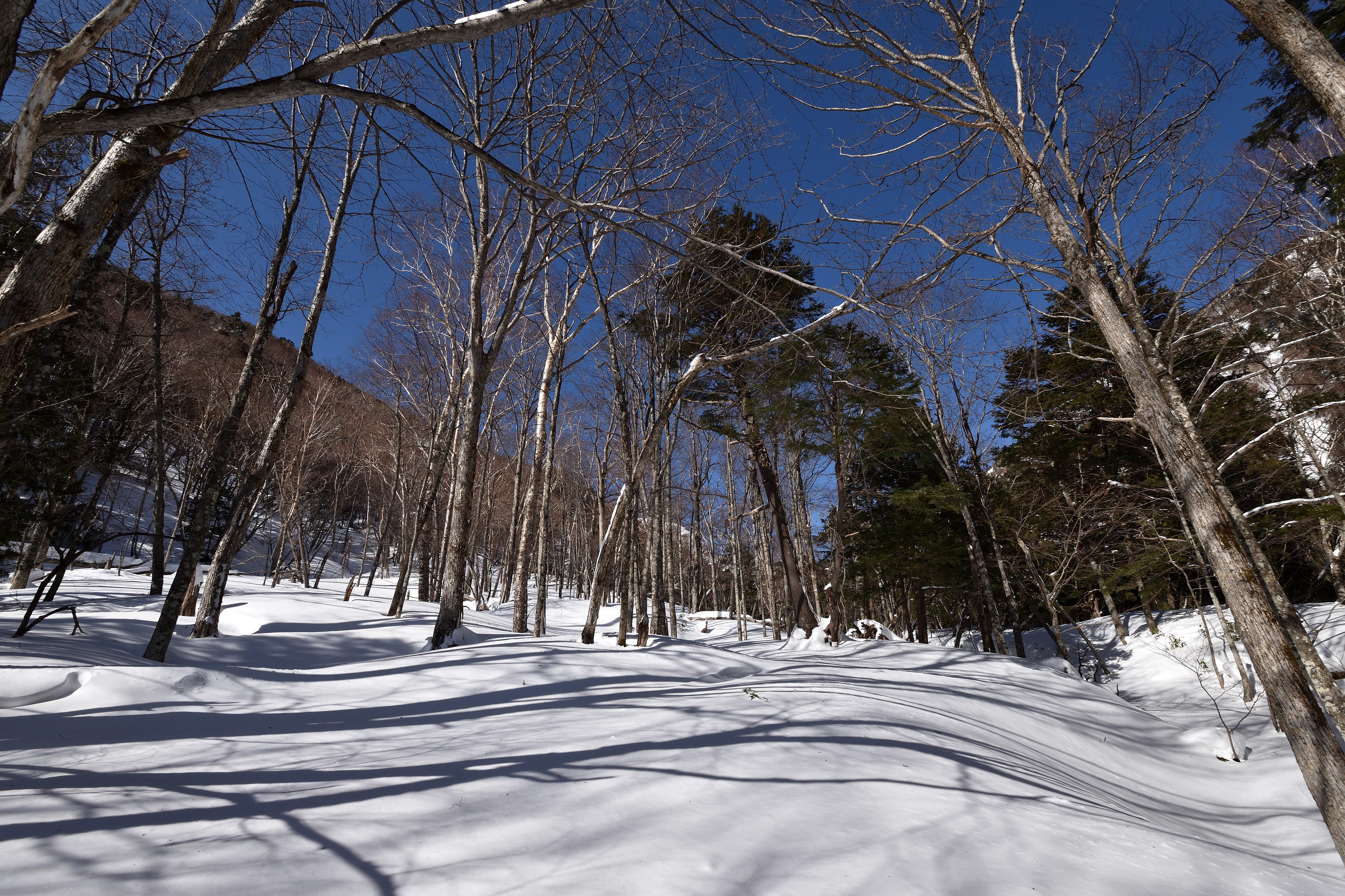 1月30日、開通作業組にタッチの差で先行し、3本の公式コースの1つ「金精の森」を歩いてきました。