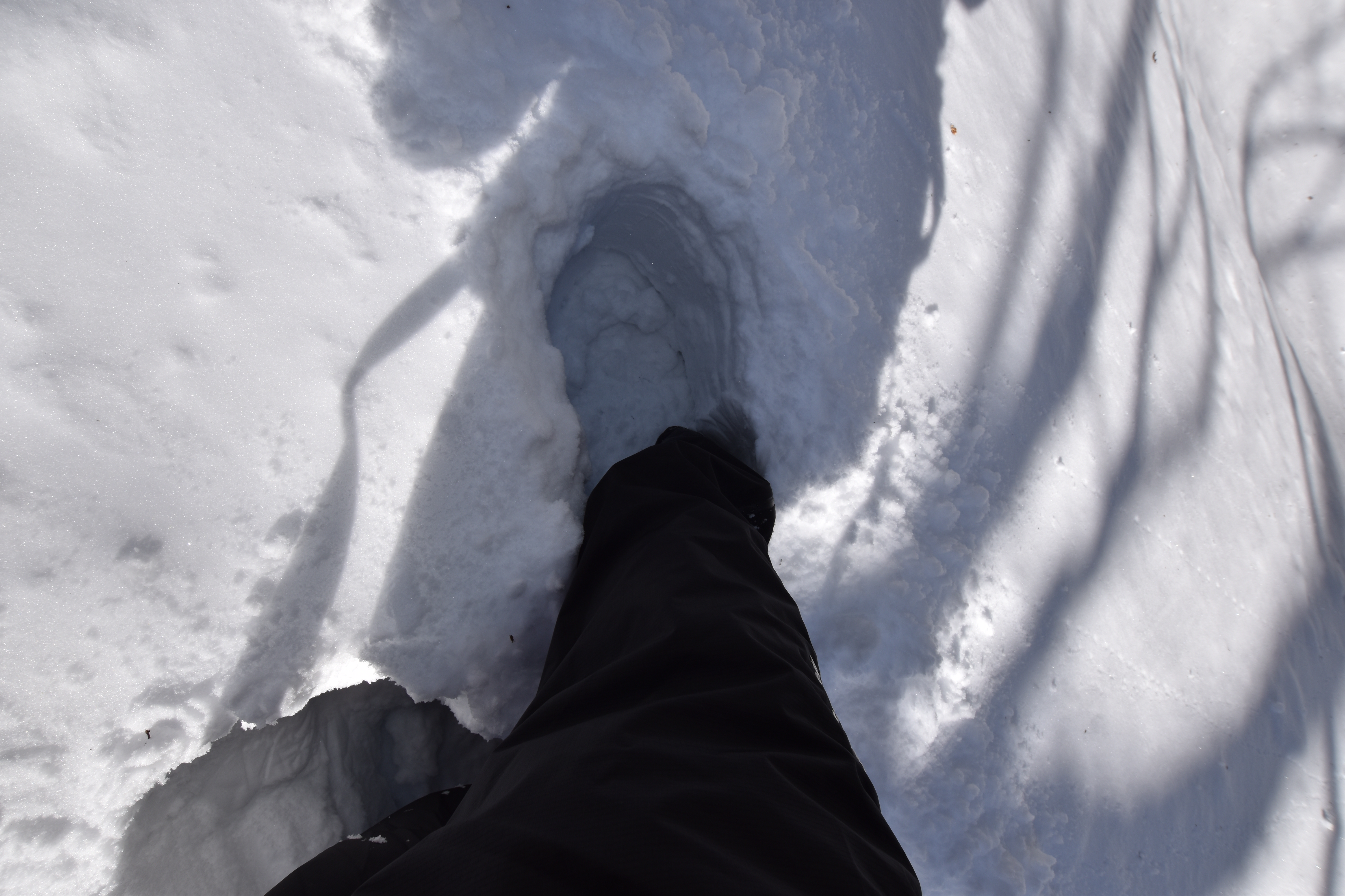 ・・・ですが、所により60cmほど足が沈み、もう少し雪が締まった方が歩きやすくなりそう。