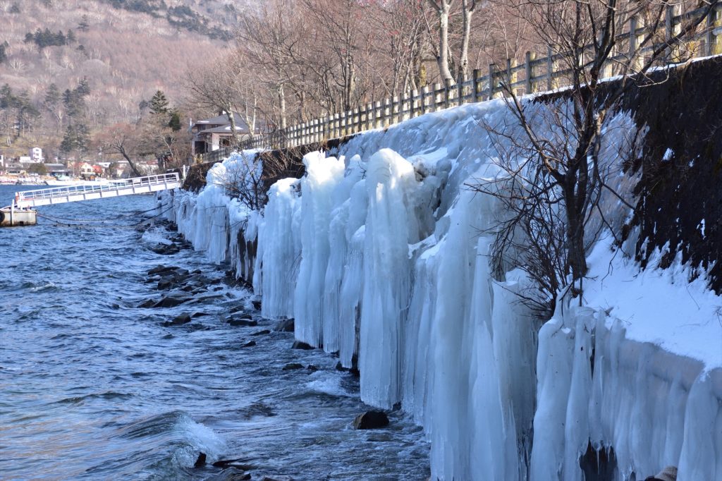 続いて2月14日に確認した中禅寺湖・丸山駐車場付近のしぶき氷については、